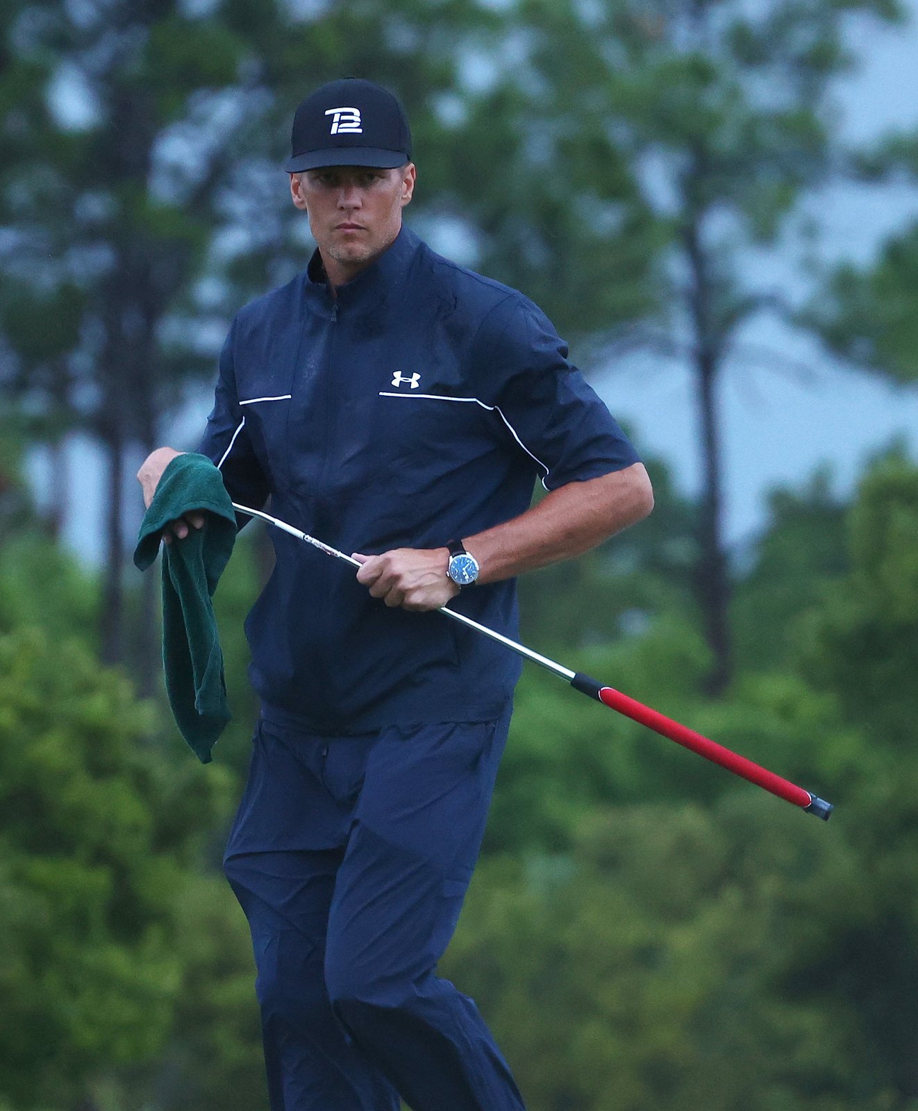 NFL player and quarterback of Tampa Bay Buccaneers, Tom Brady wears IWC Schaffhausen during the “The Match: Champions for Charity” tournament at the Medalist Golf Club in Hobe Sound, Florida. (Photo by Mike Ehrmann / Getty Images for The Match)