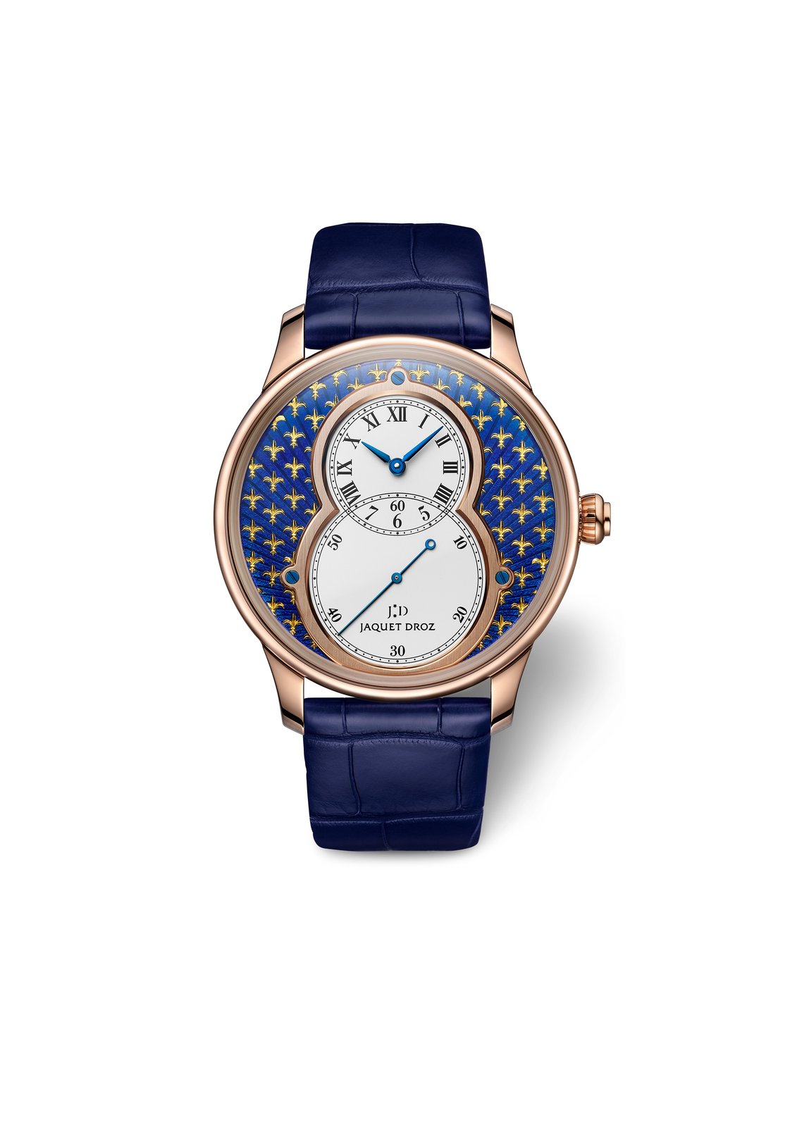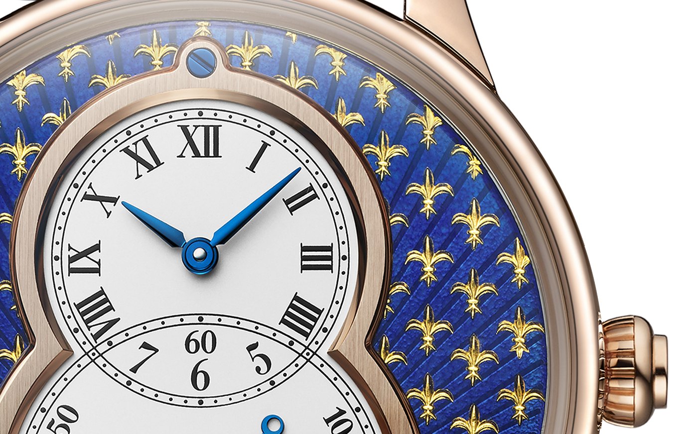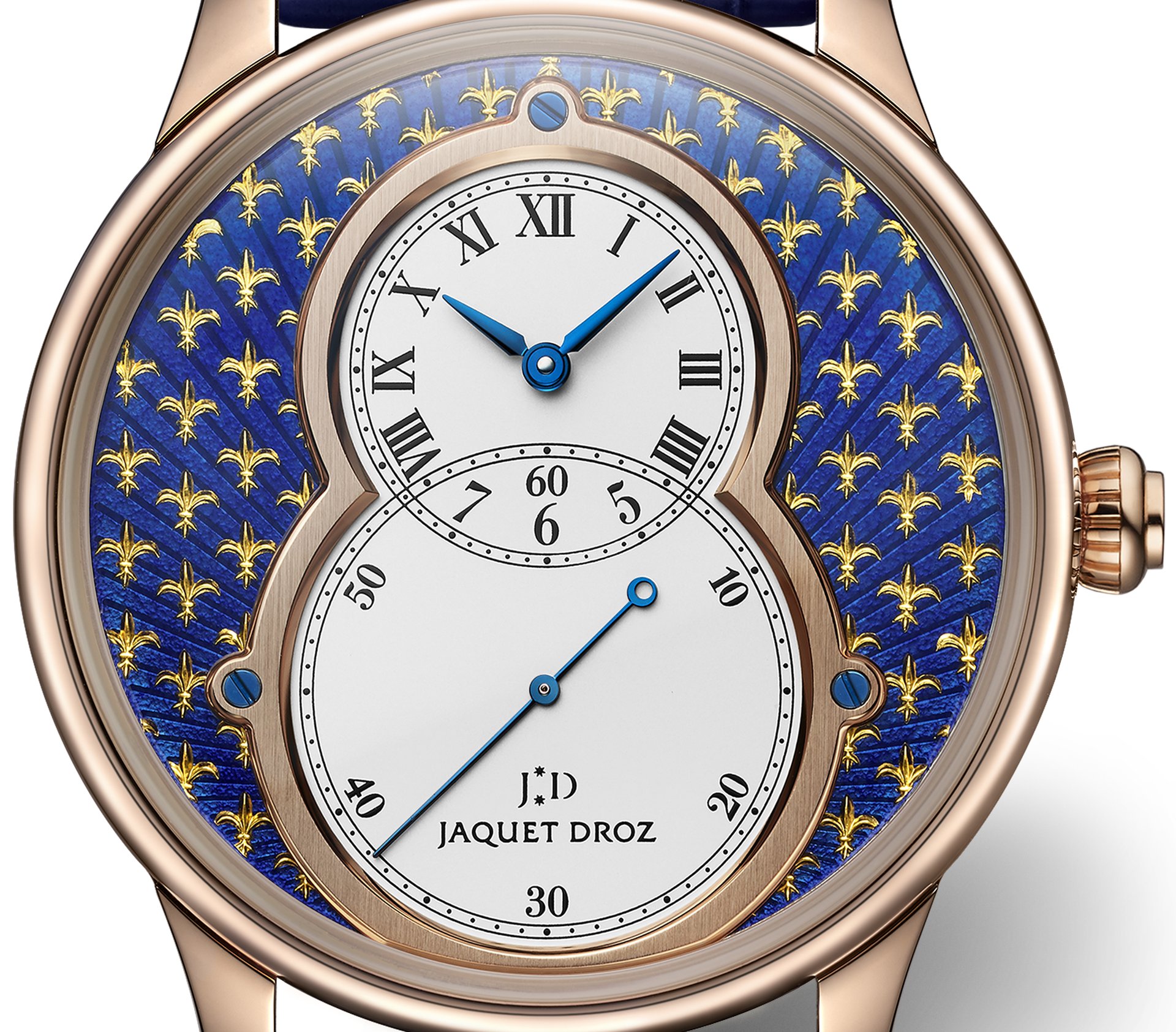 Each of these new pieces is extremely limited to a Numerus Clausus series of eight, and Jaquet Droz opted for two distinctive ornamental designs: Fleur de Lys and Fleur de Vie. The former symbolizes kings and emperors. Emblems of a very long heraldic tradition, fleurs de lys are still found from France to Missouri, by way of England, Finland, Germany and Spain.
