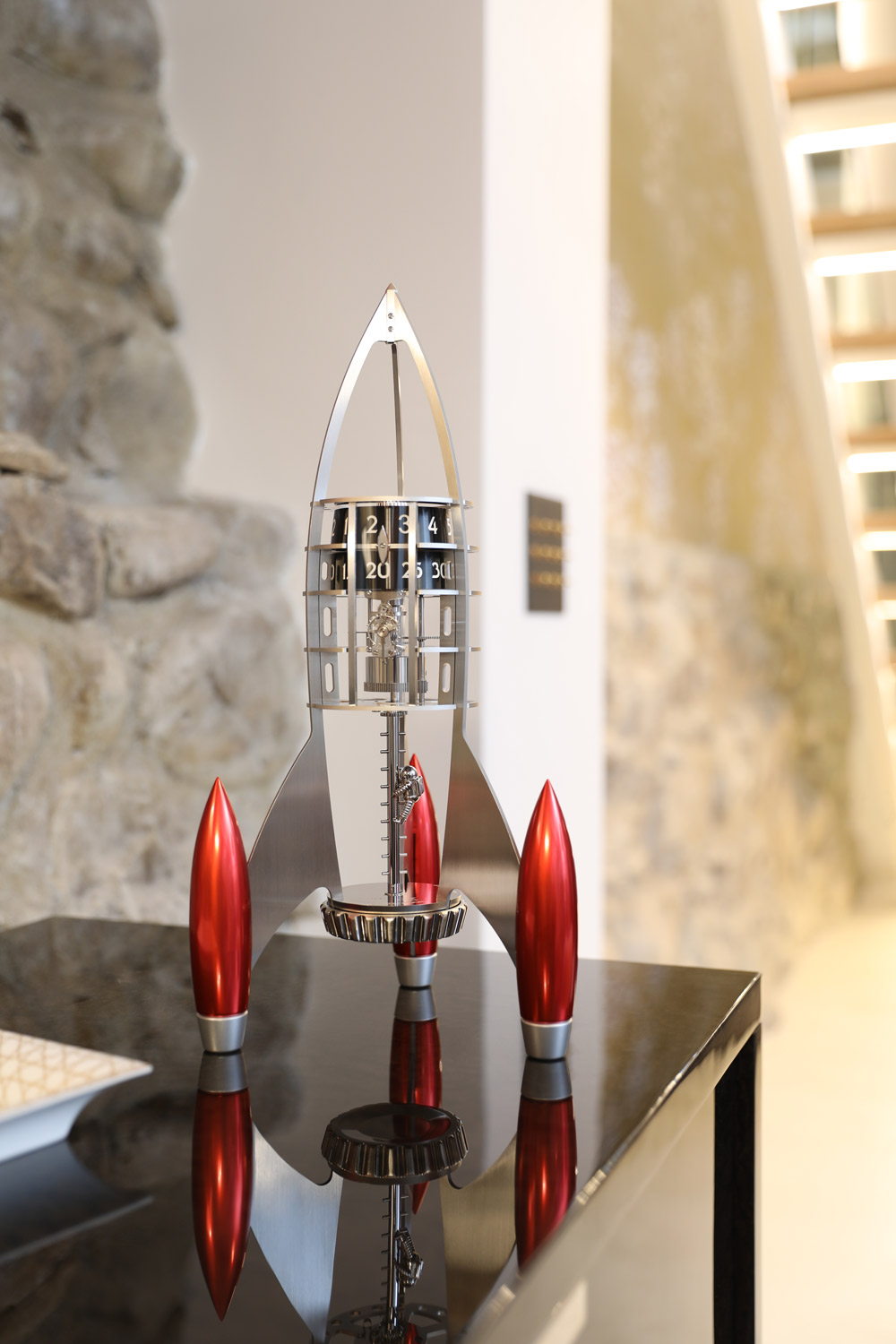 The stability of the clock is ensured by the substantial weight of Destination Moon’s three landing pods.