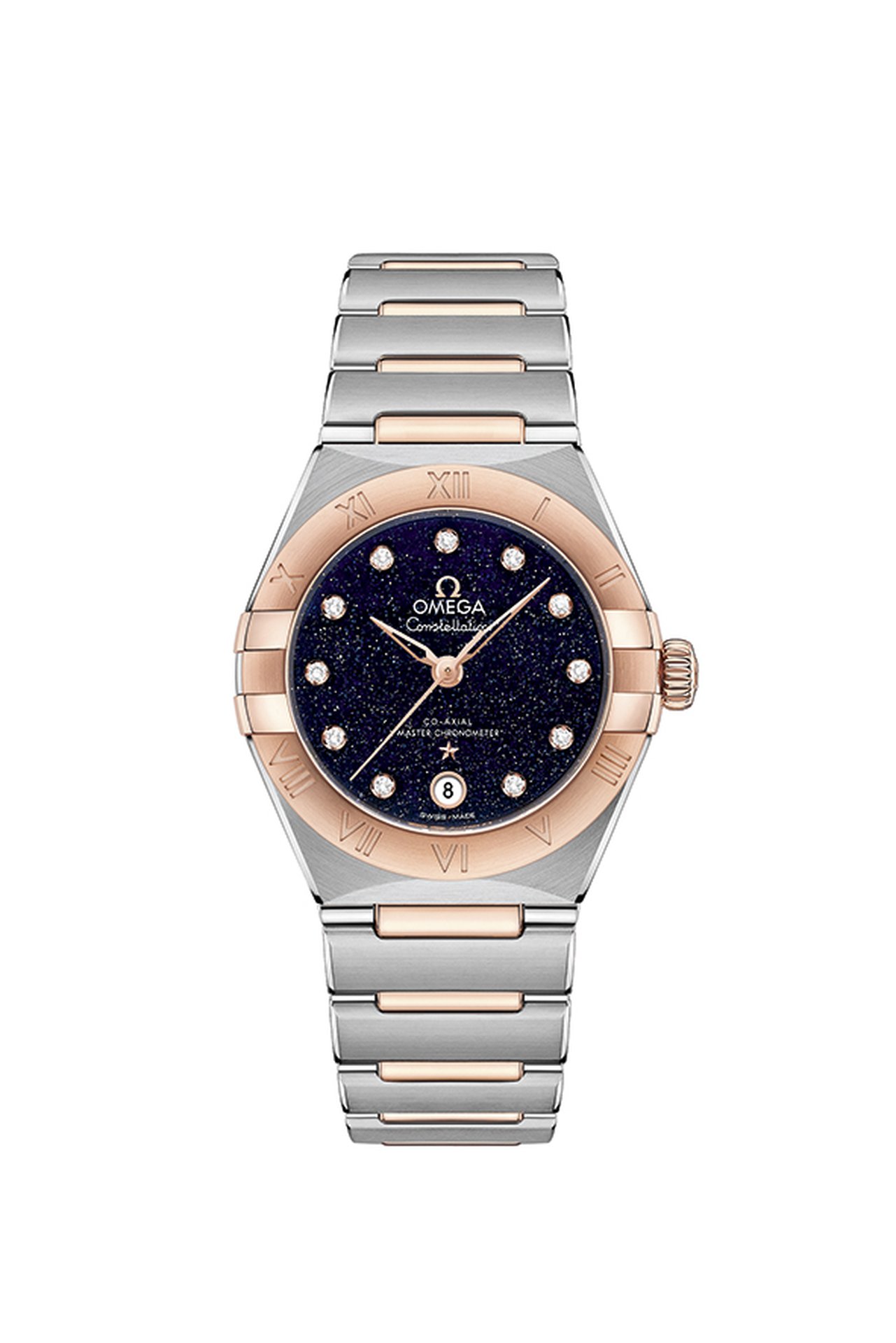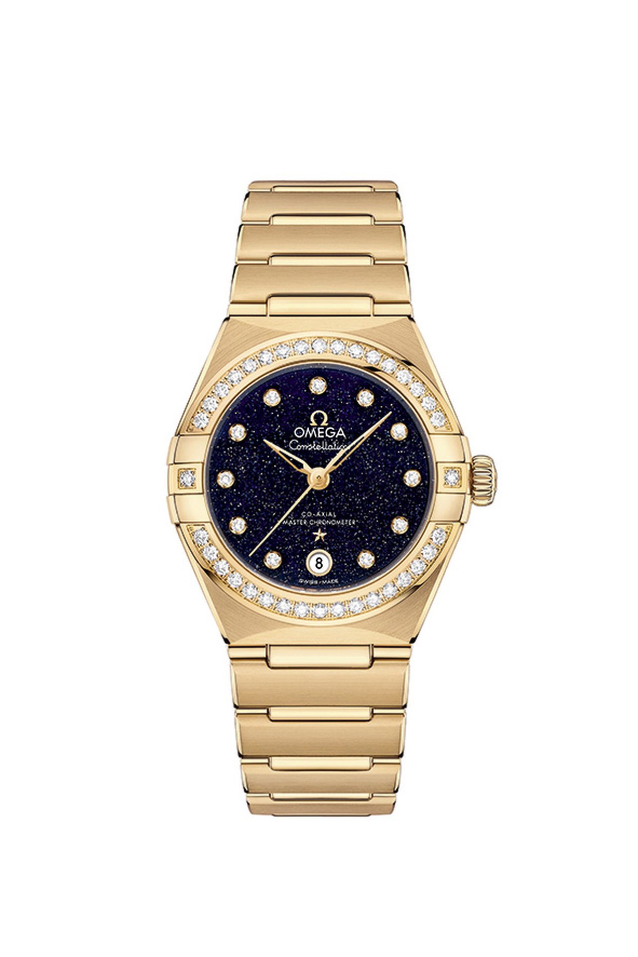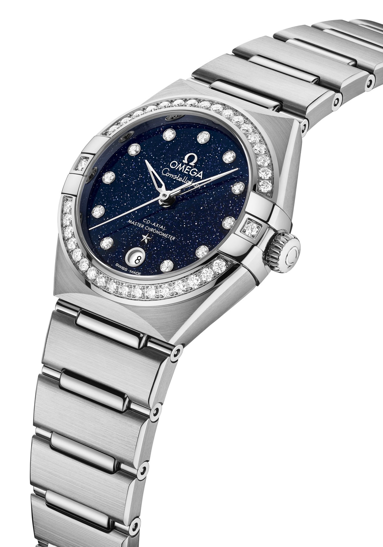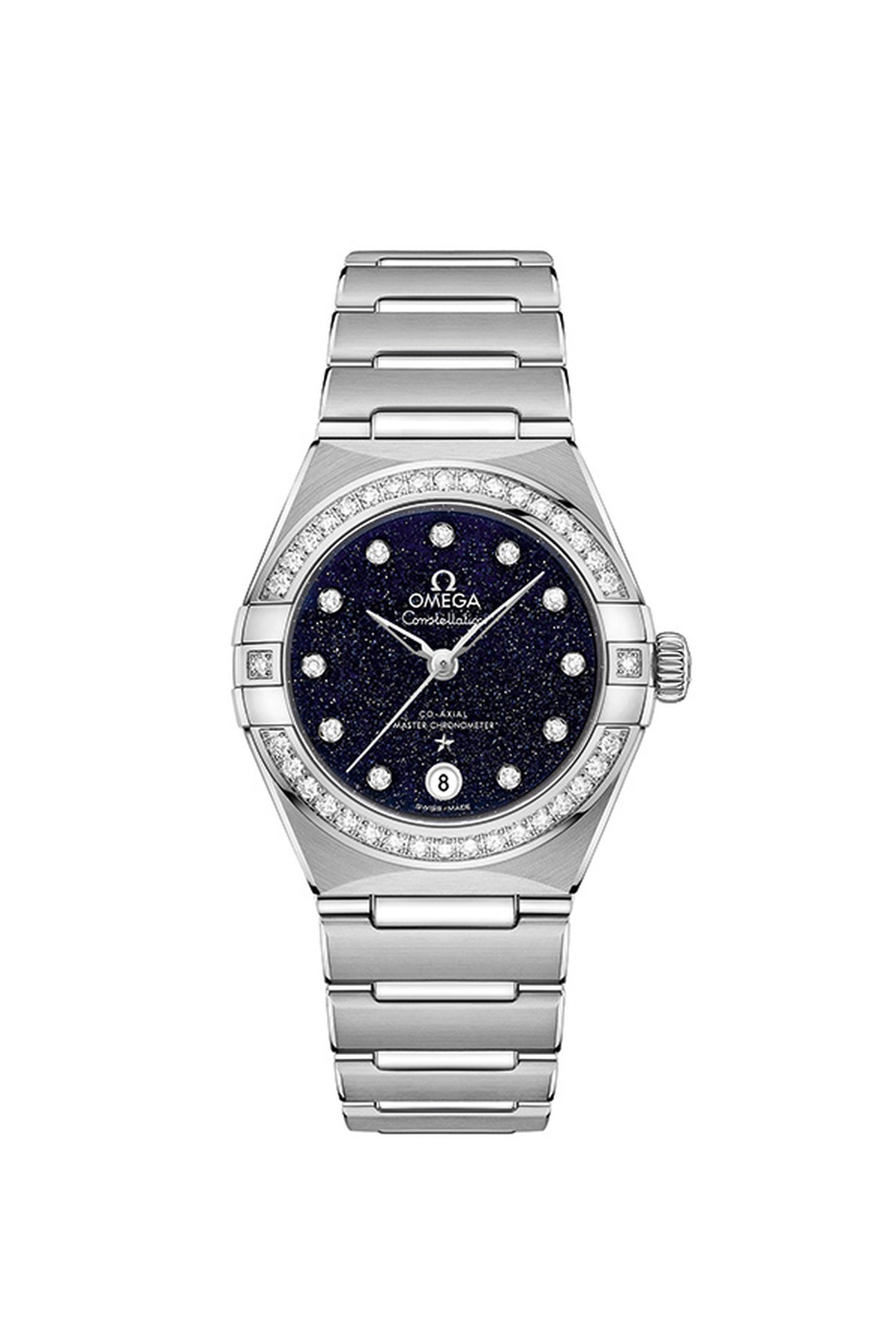 OMEGA’s 29mm Constellation models embrace the seductive appeal of sparkling blue glass, with striking Aventurine dials that recall a star-filled sky. Not only is each Aventurine dial totally unique in its appearance, but the bold shade contrasts beautifully with the luxurious case and bracelet materials: a choice of stainless steel, 18K Sedna™ gold, yellow gold, or blends of steel and gold.