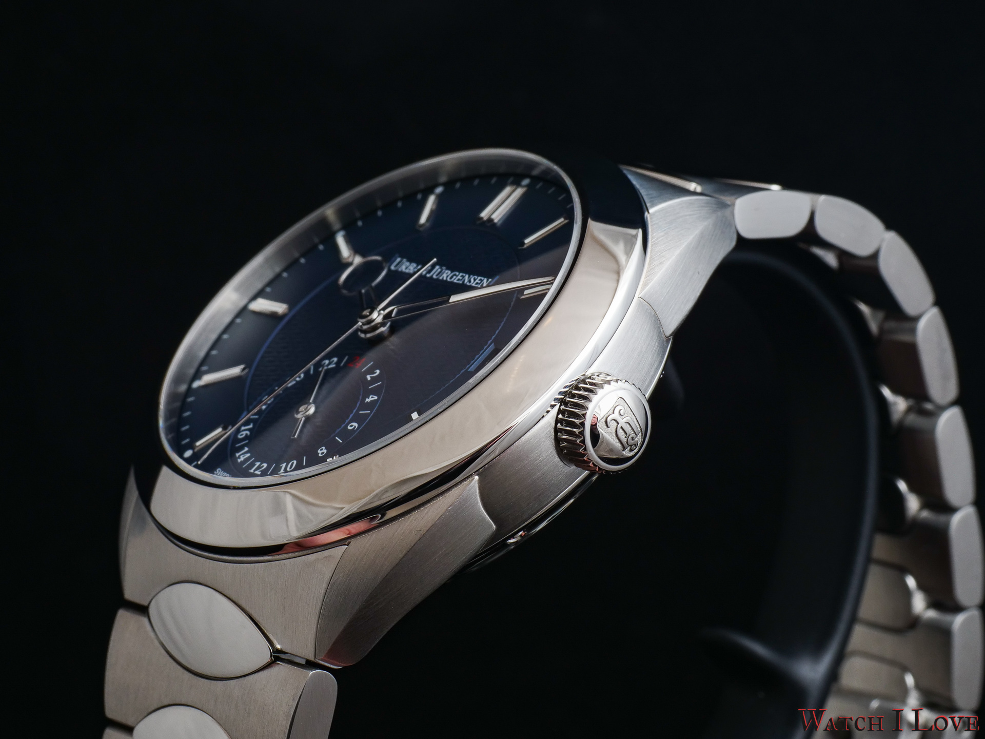 The case fits an elegant crown. This is decorated with the Urban Jürgensen logo. The watch is easy to set and wind. A very pleasant experience.