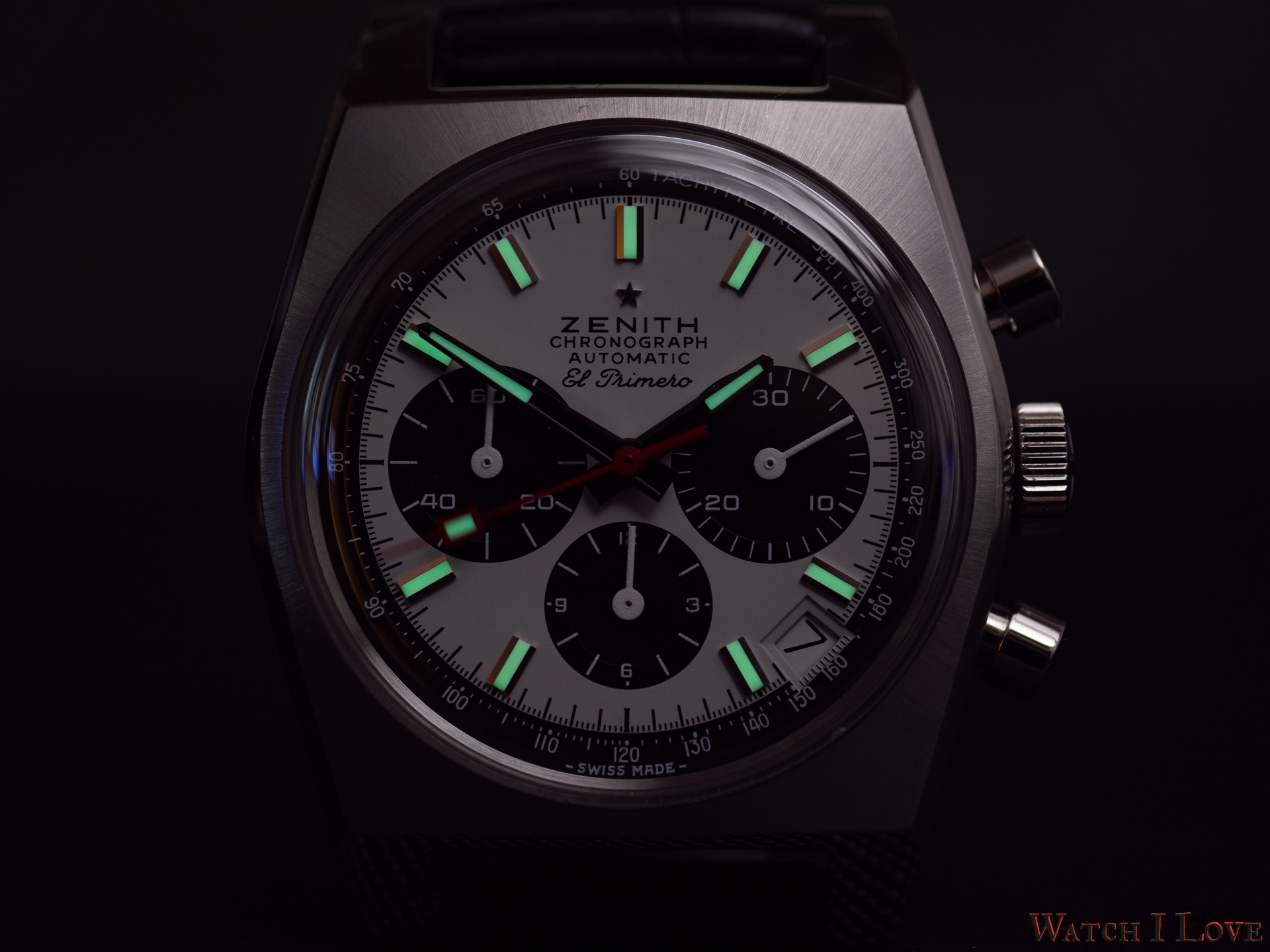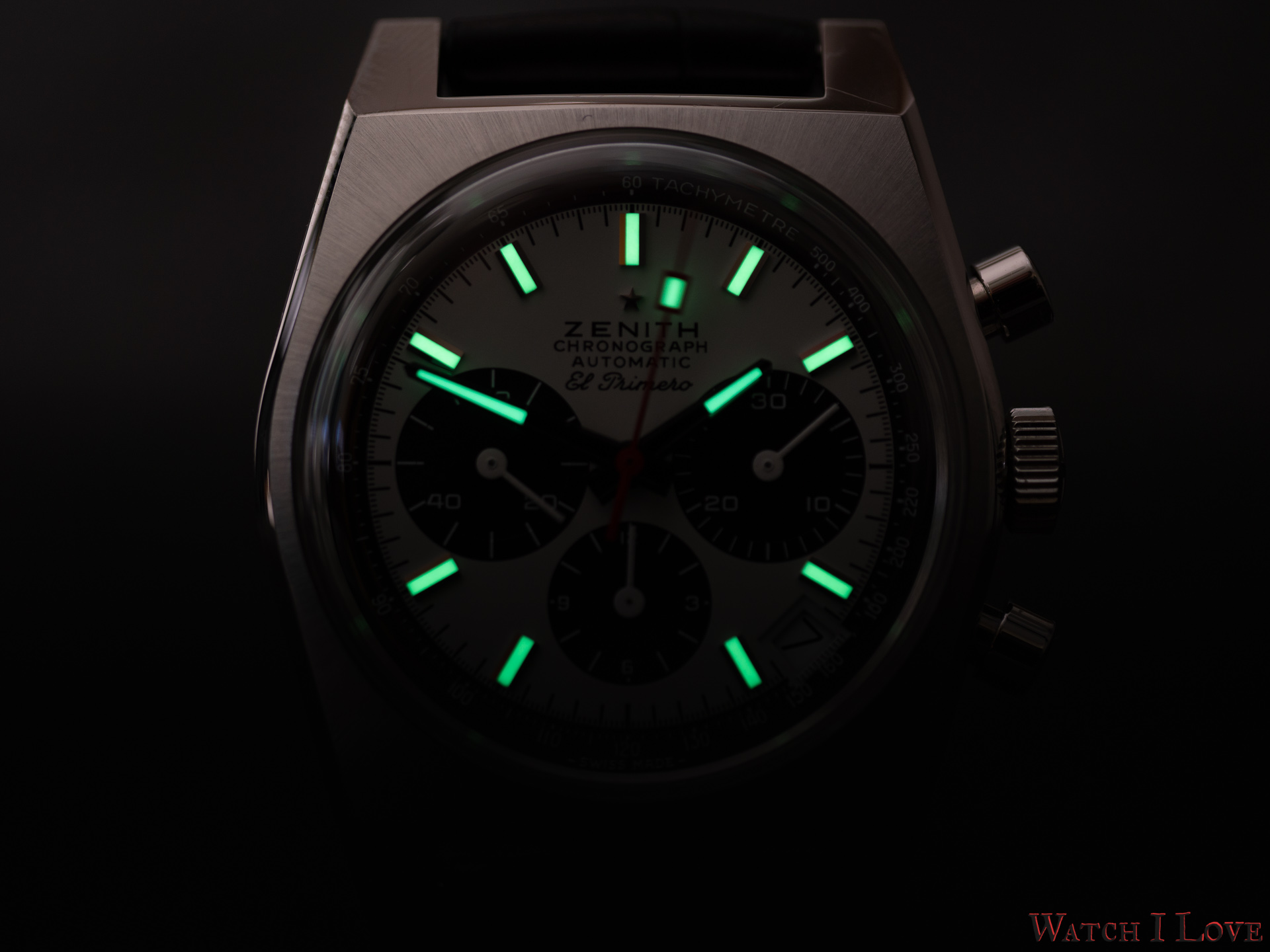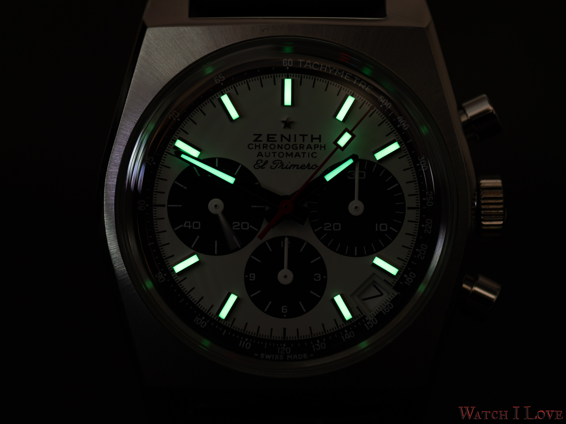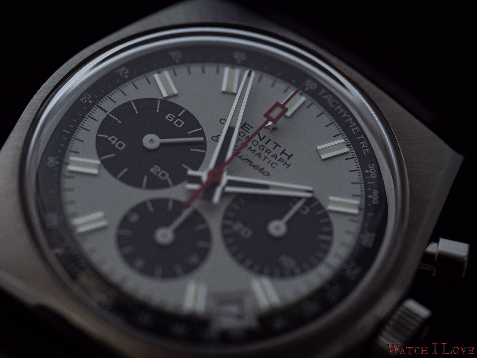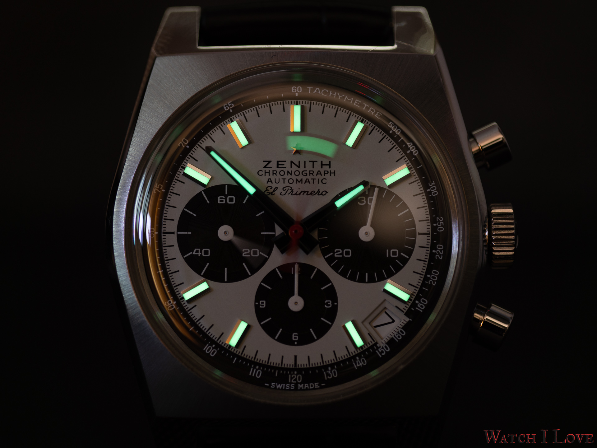 The three registers configuration is no secret. The panda dial with outer tachymeter scale is another classic. El Primero is an icon. But what amazed me from the very beginning was the strong and lovely luminescent used. Even in the lightest shade, the hands and indexes popped out.