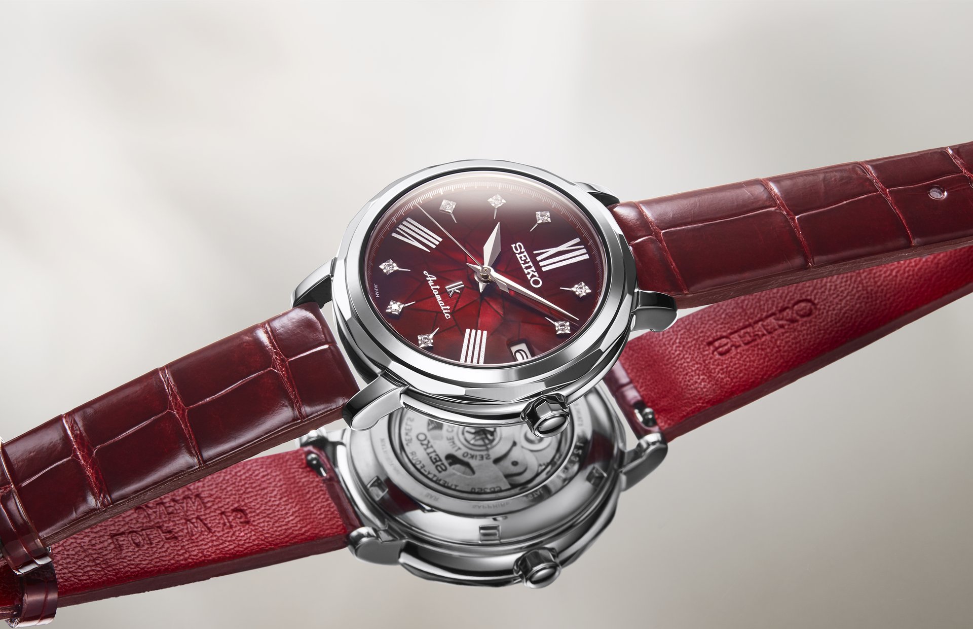 The new Seiko Lukia collection celebrates the glamour, vivacity and refinement of today’s Ginza. Since 1995, Lukia has been adorning the wrists of discerning women in Japan and it is now, for the first time, available outside of Asia. The collection comprises six creations, each of which has a dial featuring a traditional Japanese colour overlaid on a mother-of-pearl base with a flower motif and eight diamond hour markers. Each dial is coloured from both sides, which allows the full richness of the colour to blend harmoniously with the texture of the mother-of-pearl dial. The case offers a soft, delicate feeling on the wrist thanks to its perfectly rounded edges.