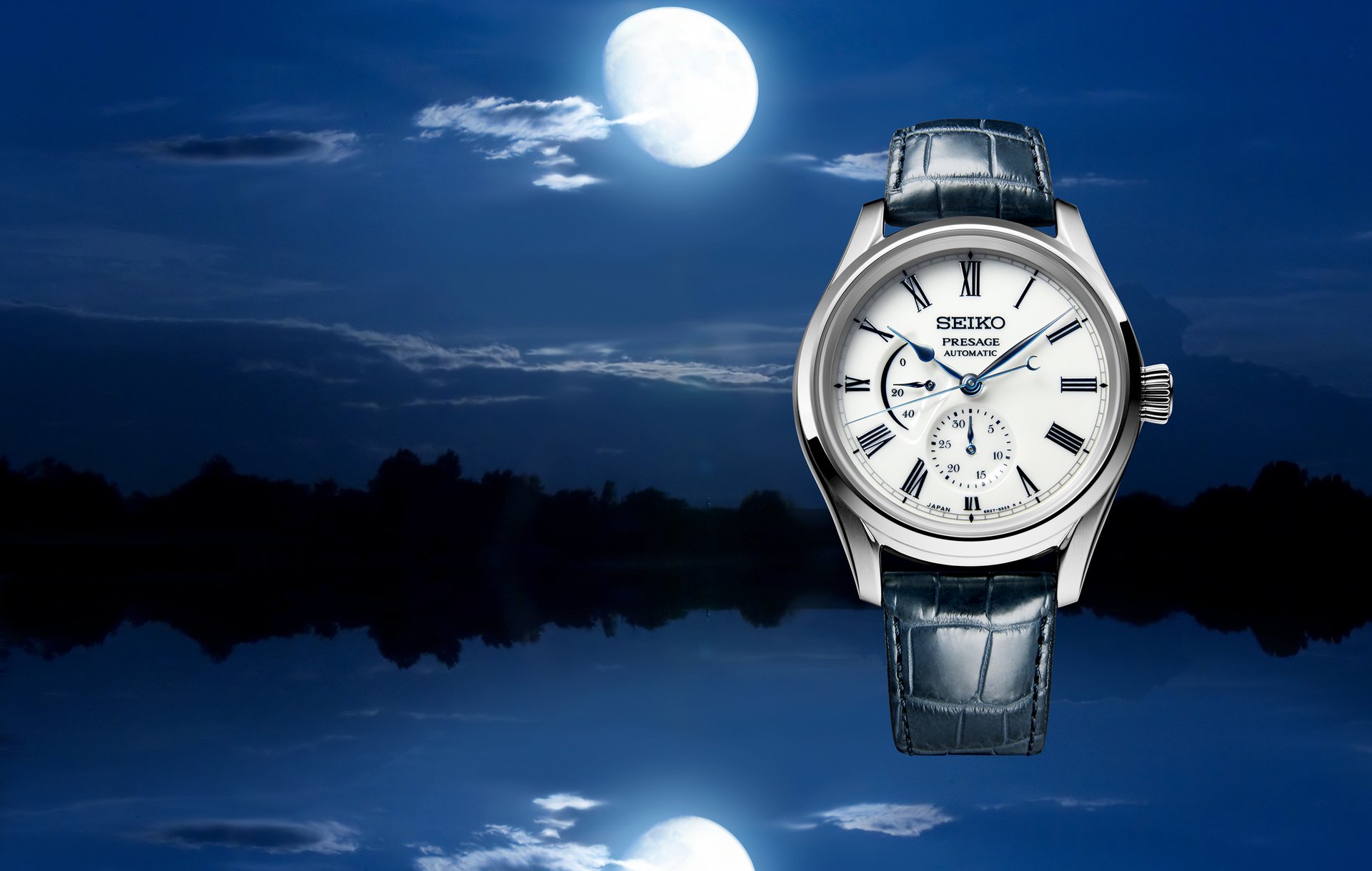 During the Heian age, from the late eighth to the early twelfth century, Japan enjoyed a long period of prosperity during which a large part of the nation’s cultural identity was forged through prose, poetry and painting. A favorite pastime among the leisured classes was Suigetsu, the enjoyment of the moon’s reflection on the lakes and ponds in their gardens, a sight that appealed because of its ephemerality and unattainability and that has inspired Japanese art ever since. Suigetsu is a Japanese word whose Kanji characters signify water and the moon. This fascination with the moon continues in Japan to this day and is brought to life in this new Presage creation with the highest levels of traditional Japanese hand craftsmanship and mechanical watchmaking reflected in every detail.