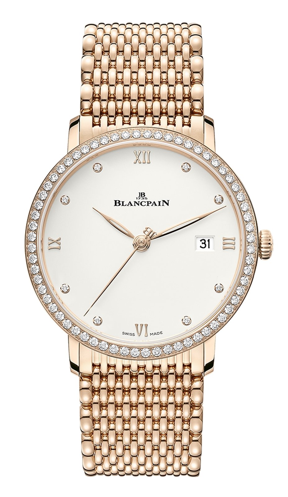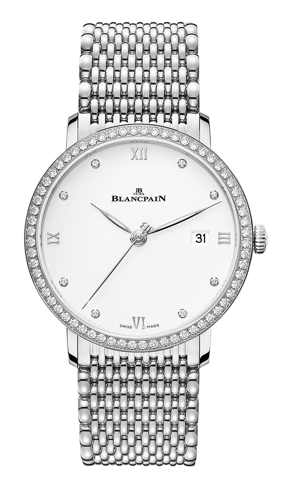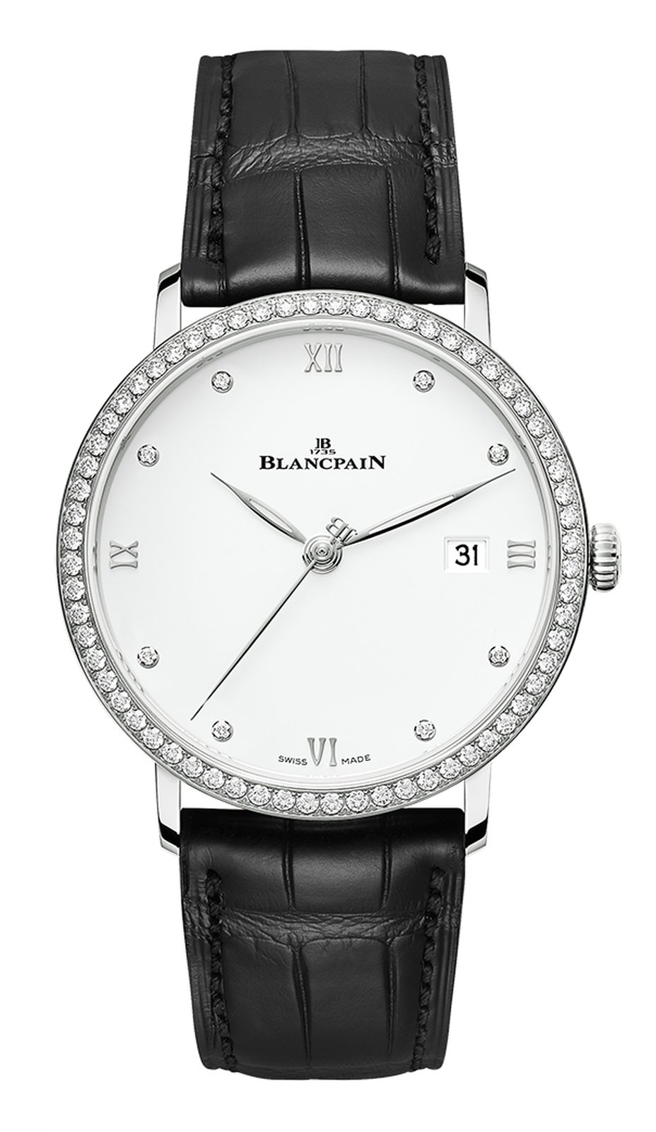 The new Villeret Ultraplate from Blancpain reproduces the onward march of time through a refined blend of slimness and purity, distilled within a case whose dimensions are suited to each and every wearer. For those looking for additional sparkle, a gem-set model is available. Paired with an alligator strap that is black for the steel version and brown for the red gold iteration, this timepiece is also available with a refined mille mailles bracelet in steel or gold respectively.