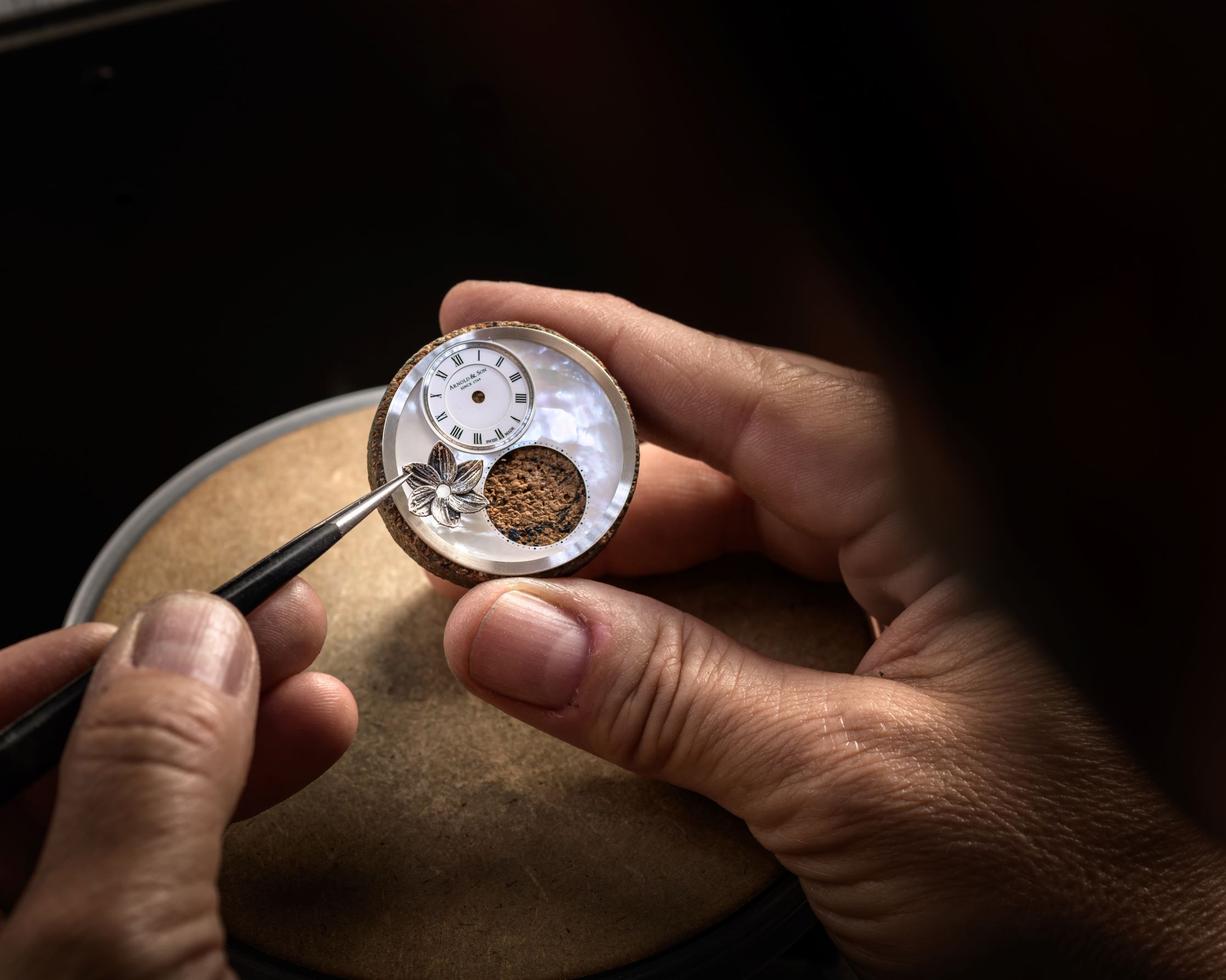 One of the models that is particularly well suited to this exercise is the Ultrathin Tourbillon, with its off-centred dial at 12 o’clock. This arrangement frees up space to provide an empty canvas that can be filled with whatever the customer desires.