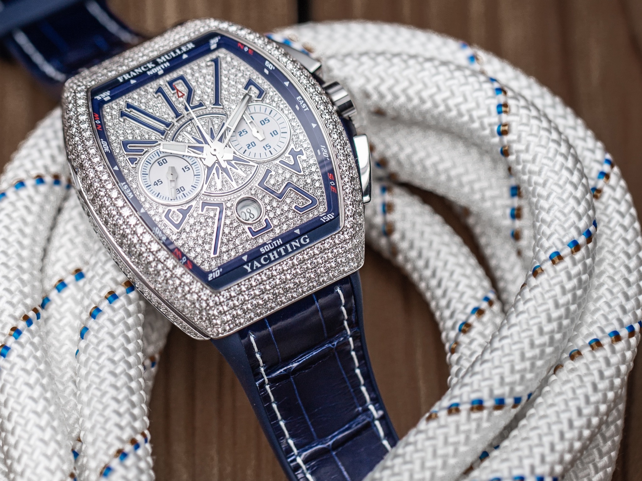 The Master of Complications, Franck Muller unveils its new timepiece dedicated to the world. Inspired by the dynamic Vanguard ™ collection, the Yachting Collection develops a new creative vision of time with its nautical details. The Yachting watch features all the seafaring details: from the deep blue to the wind rose adorning the dial everything reminds us of the sea world.