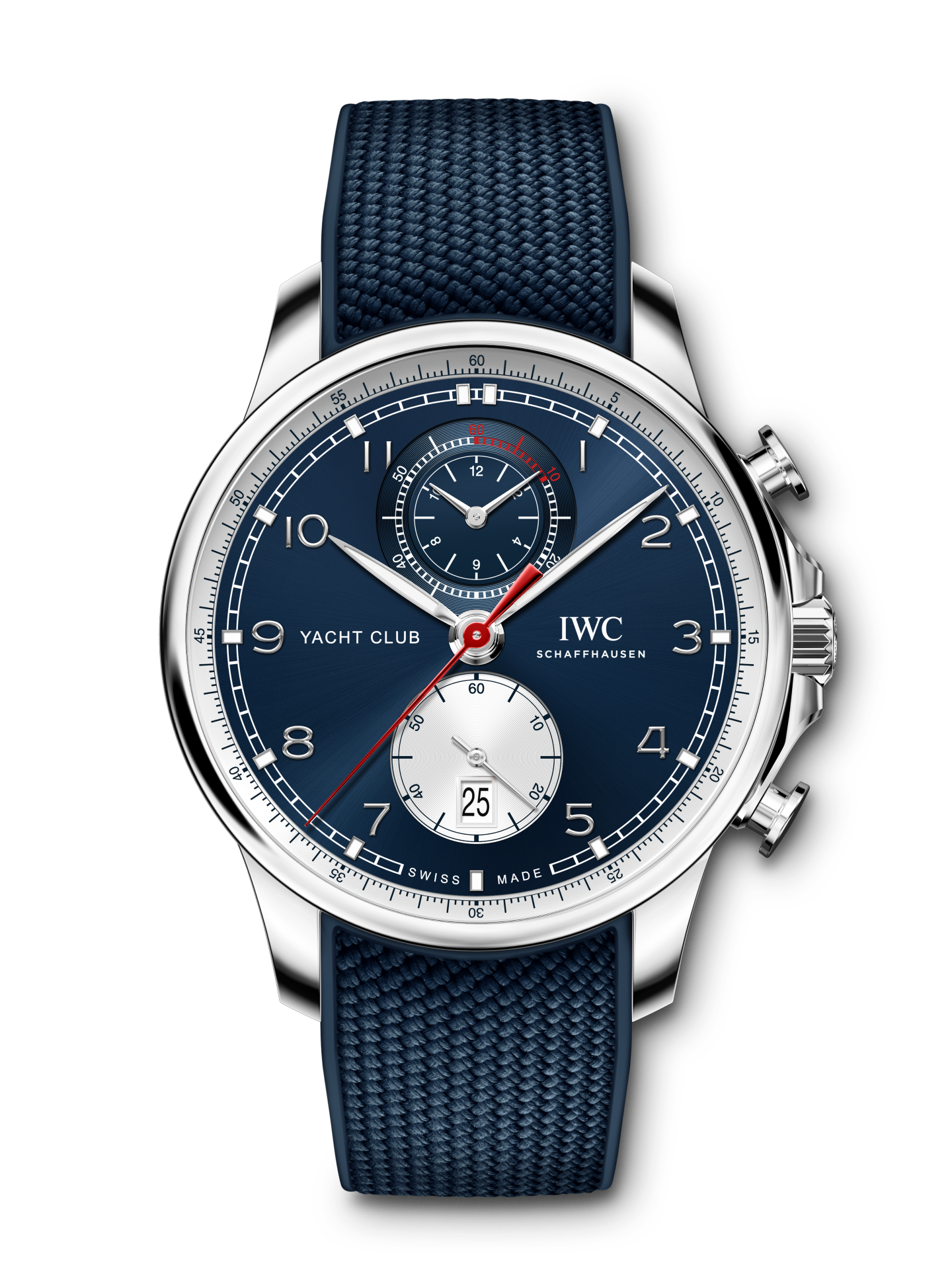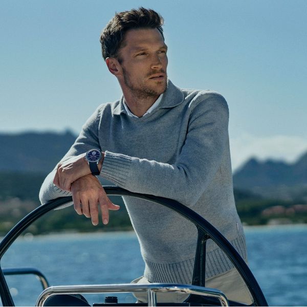 To mark the start of their collaboration, IWC has introduced the Portugieser Yacht Club Chronograph Edition “Orlebar Brown” (Ref. IW390704). The stainless steel case is complemented by a marine-blue dial and a co-branded side-fastener buckle, featuring white and red colour accents, which are often used in Orlebar Brown’s product range. The nautical chronograph with elegant case proportions is worn on a blue rubber strap with textile inlay. Thanks to its robust design and water resistance of 6 bar, this watch is ideally suited for either an action-packed adventure on the deck of a yacht or relaxing at the beach or pool. The IWC-manufactured calibre 89361 with flyback function displays the measured hours and minutes together on a subdial at 12 o’clock and has a power reserve of 68 hours.