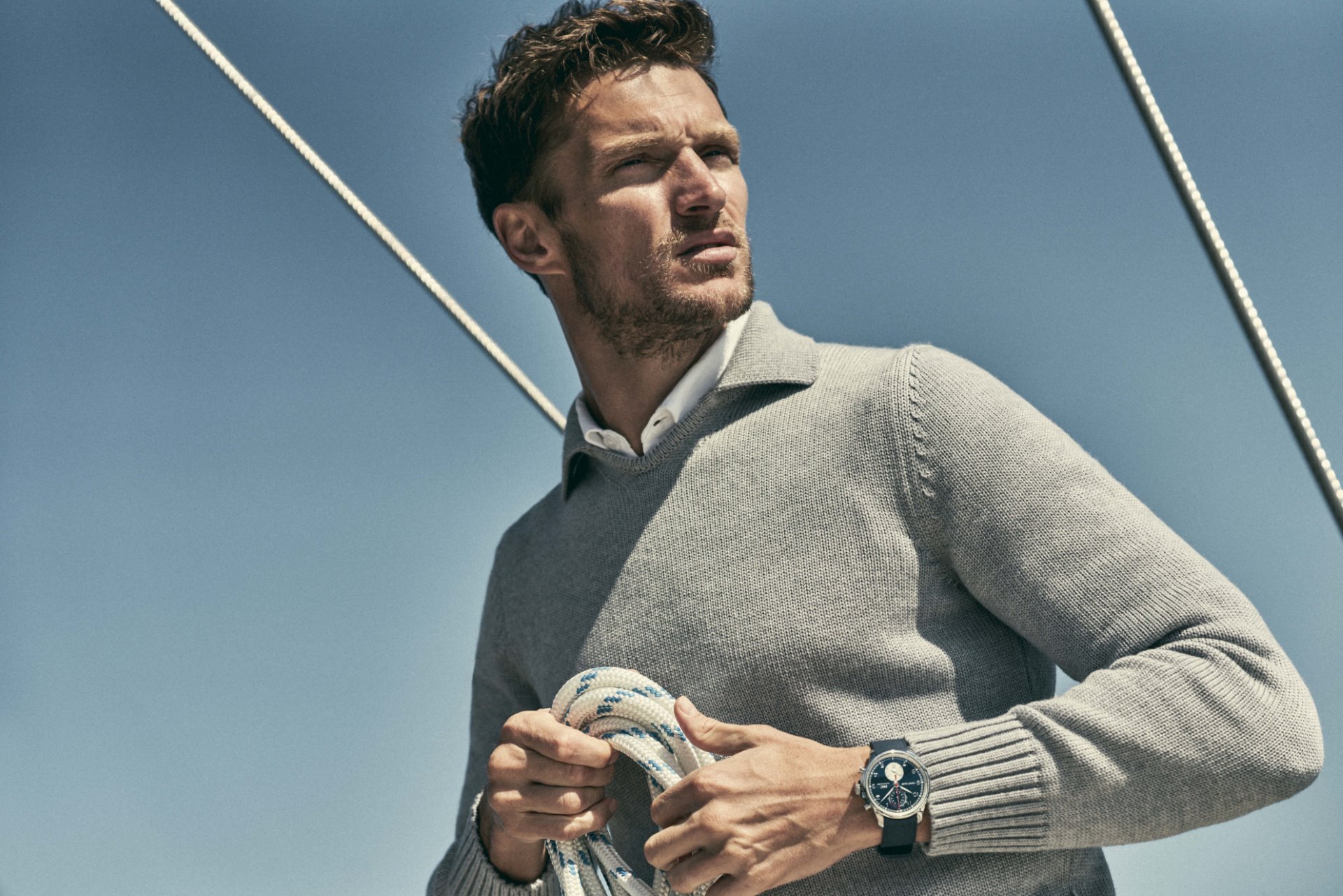 Working together, IWC Schaffhausen and Orlebar Brown also designed a nine-piece “Capsule Collection” of resort wear. “Just like the Portugieser Yacht Club Chronograph, our collection combines timeless elegance and a love of adventure. During the design process, we drew inspiration from IWC’s Portugieser, a watch family that is traditionally associated with the world of water, sailing and navigation. Our collection is intended for men who successfully navigate through life, and the range supports the dynamic lifestyle of sailors, adventurers and explorers with good design, reliable functionality and supreme style,” explained Adam Brown, founder of Orlebar Brown.