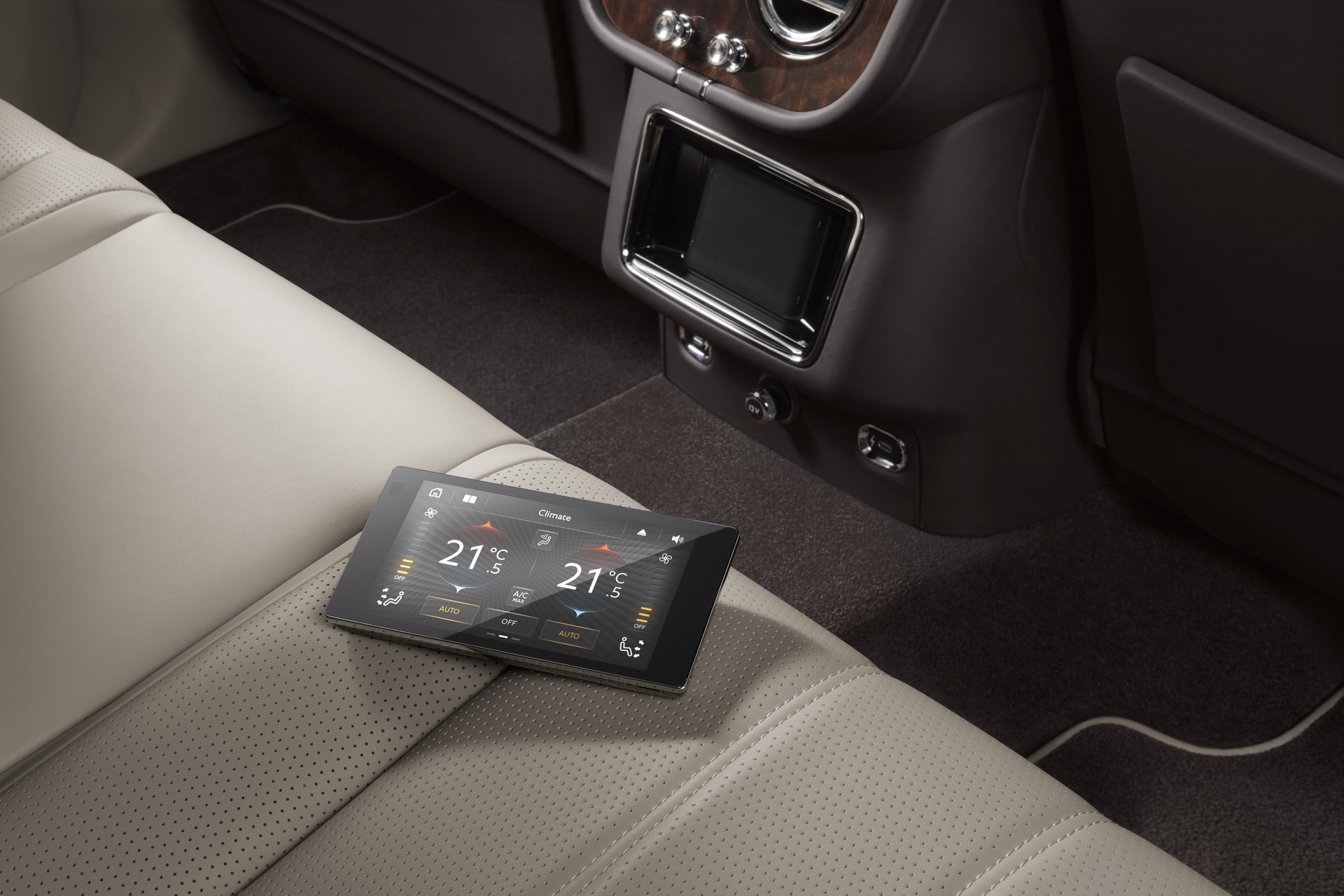 Rear seat passengers in the new Bentayga enjoy a technology upgrade with a new, larger Touch Screen Remote control tablet, similar to that introduced in the all-new Flying Spur. The five-inch display shows more contemporary graphics and has extra processing power through an onboard quad-core processor and 1 GB of RAM. The unit can control a range of functions, from rear seat heating and massage, to the media system and navigation, to mood lighting and window blinds.