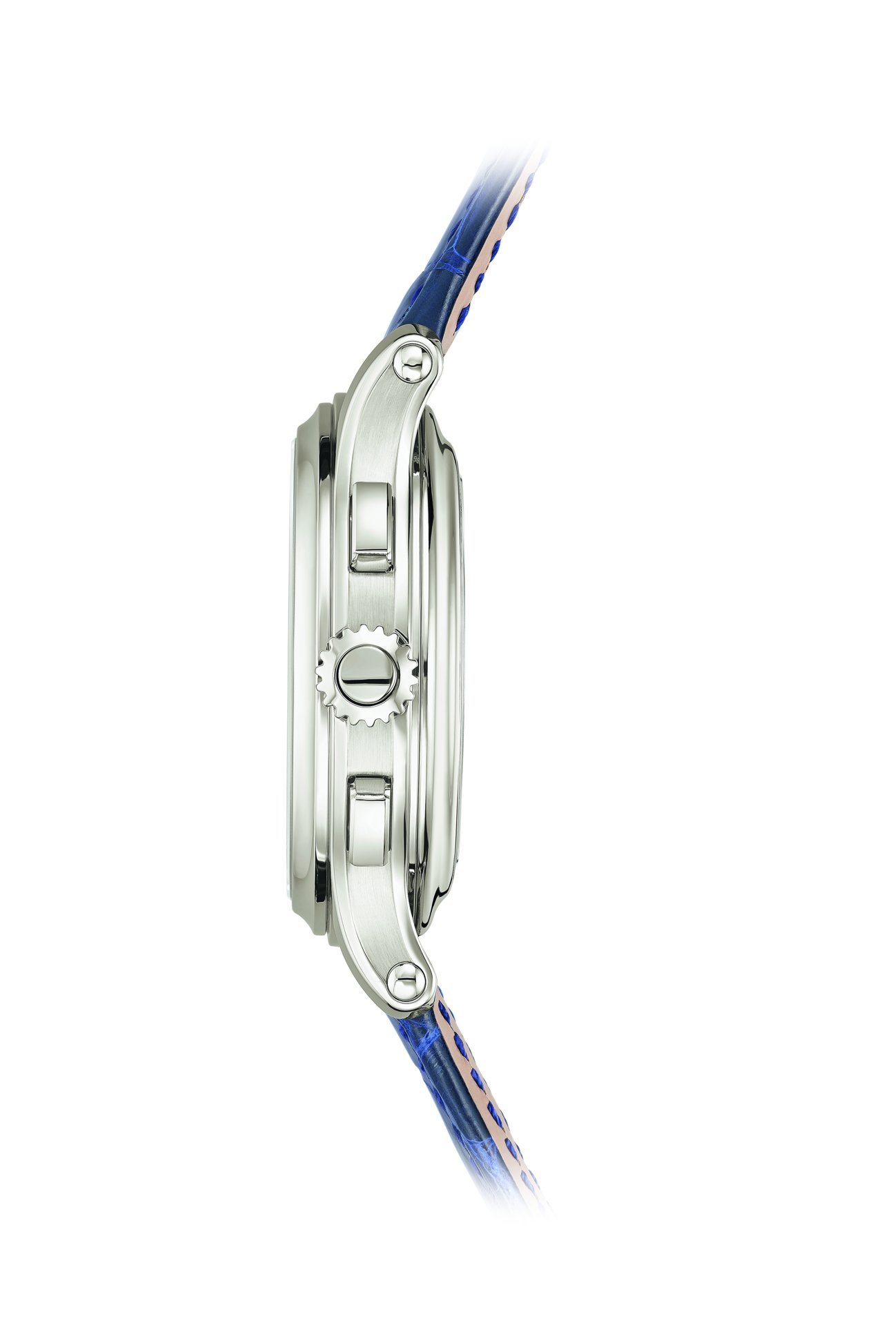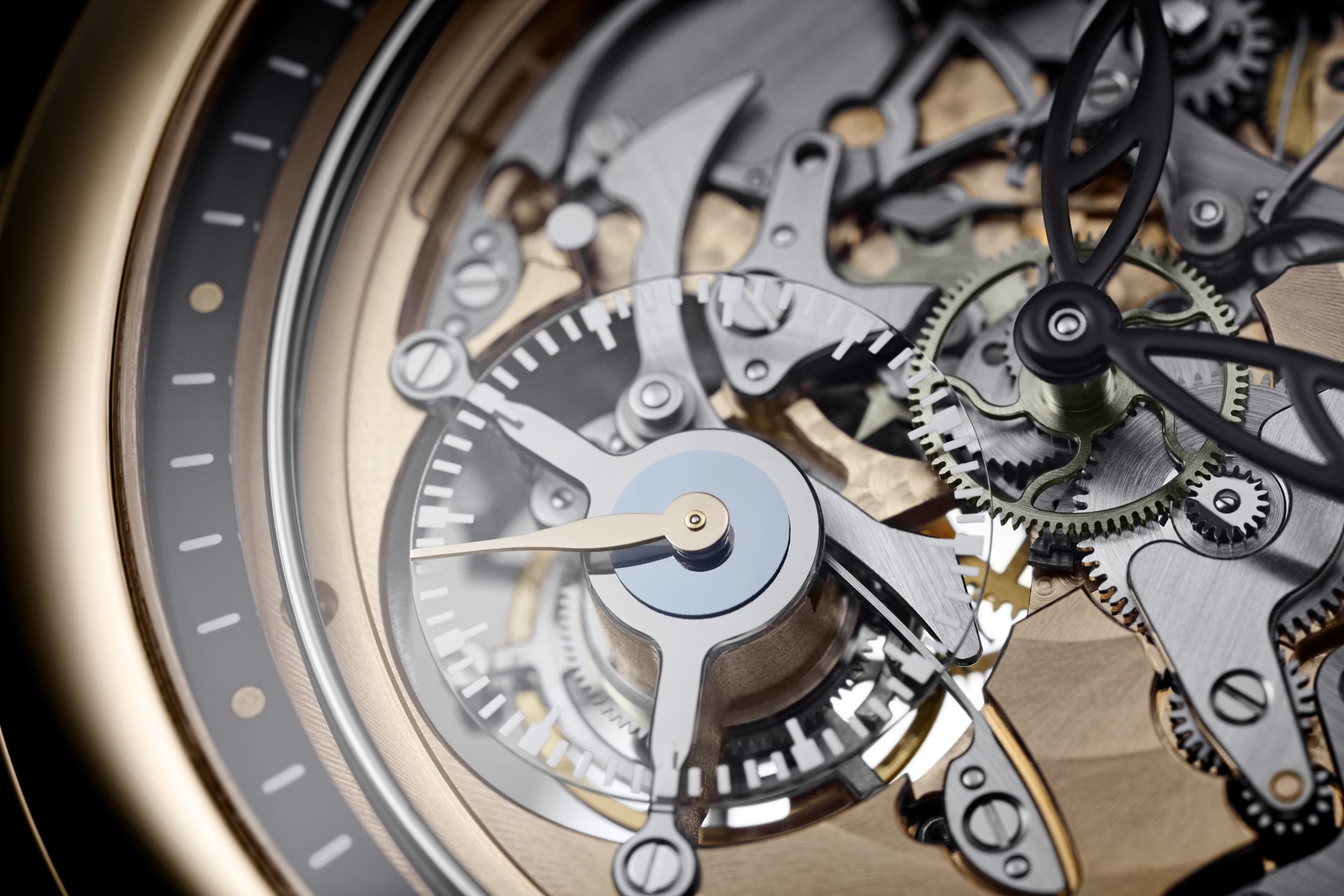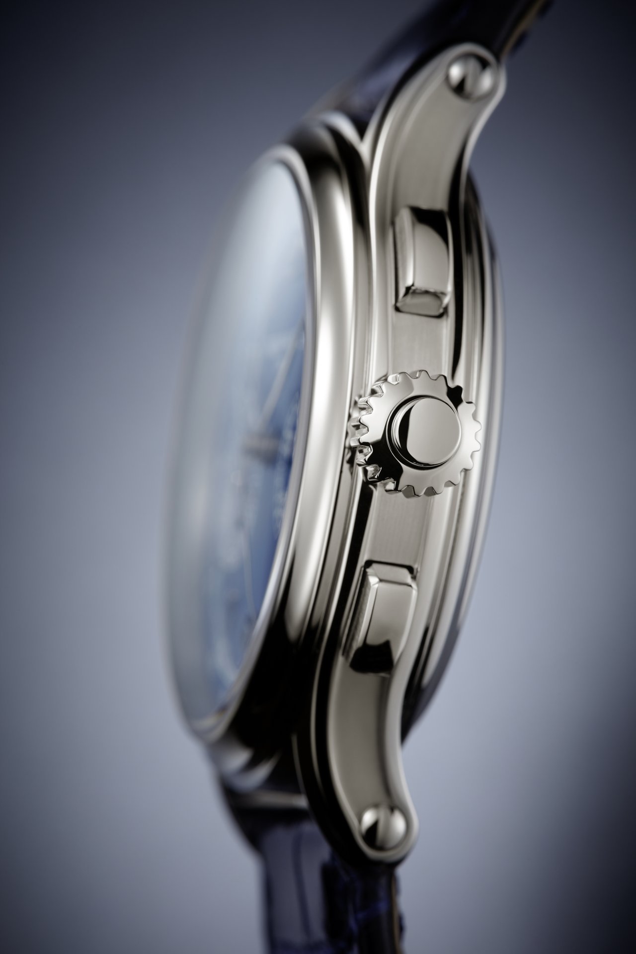 The two-phase chronograph movement with two pushers for the chronograph functions and a rattrapante pusher integrated in the crown at 3 o’clock is an impressive example of how tradition meets innovation. The classic elements of the basic architecture are the manual winder, dual-column-wheel control, and the horizontal wheel clutch. Nonetheless, it is a 21st- century movement endowed with extensive optimization details and patented innovations as well as an advanced rattrapante mechanism.