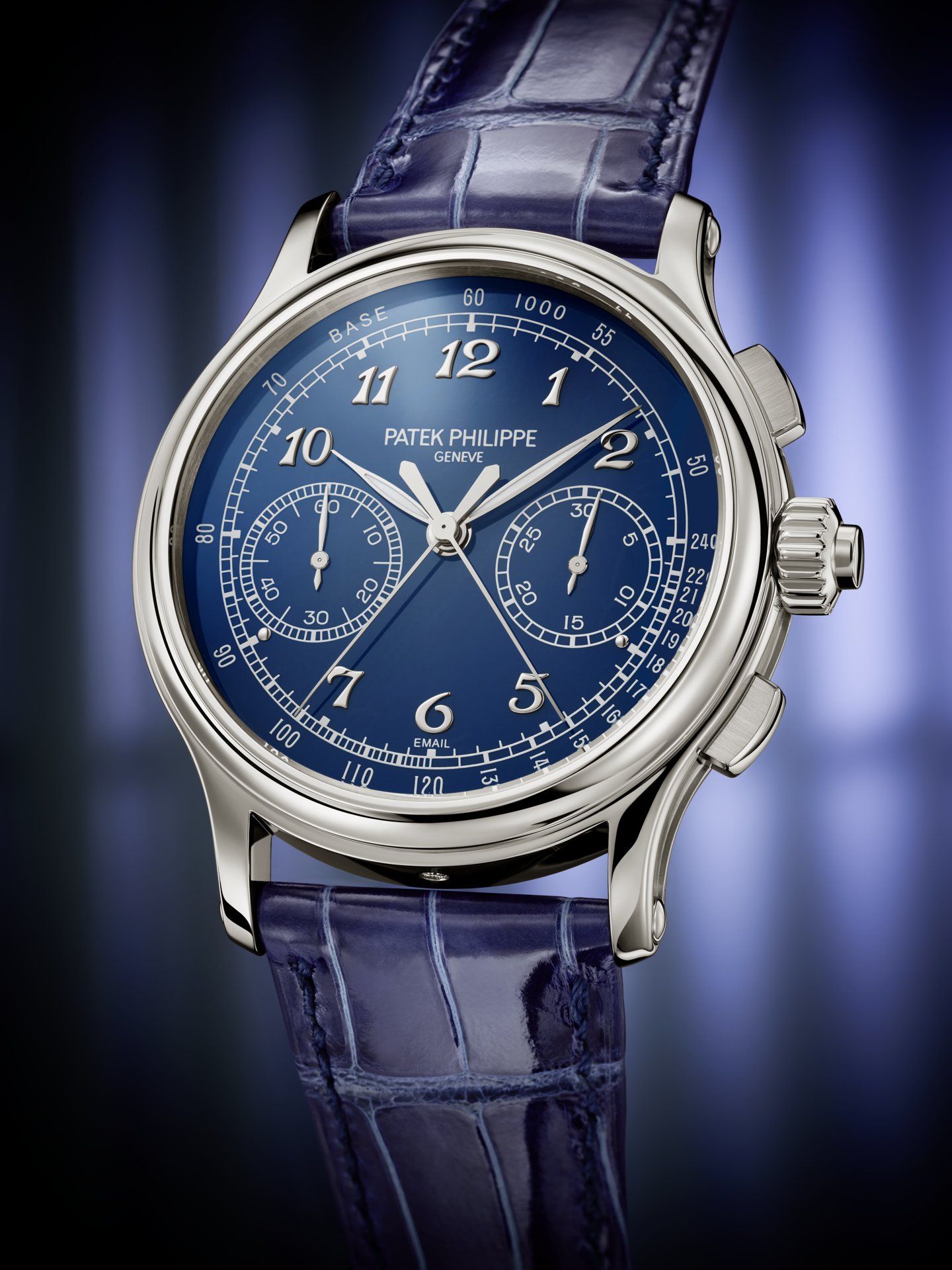 Ref. 5370P-011 Split-Seconds Chronograph – A new face with a blue Grand Feu enamel dial