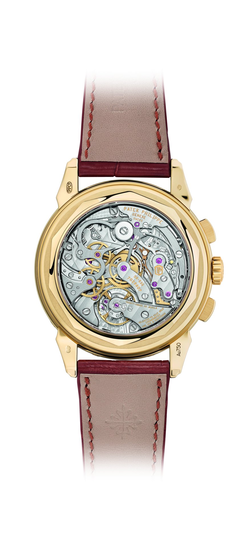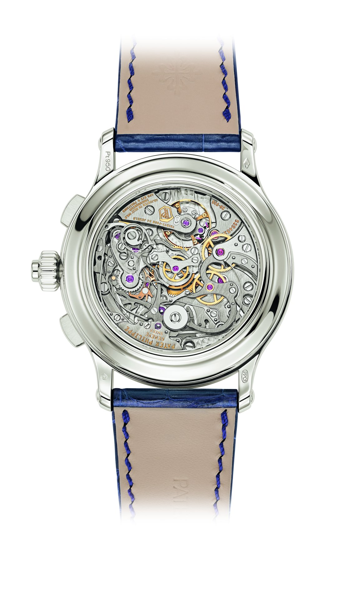 The calibre CH 29-535 PS Q is the first chronograph movement with a perpetual calendar developed in 2011 and crafted entirely by Patek Philippe. It combines traditional architecture (horizontal clutch, column wheel and manual winder) with six patented innovations for the chronograph functions and stands out with its extremely thin calendar mechanism (1.65 mm for 182 parts). The movement can be admired through the sapphire-crystal case back. A solid back in 18K yellow gold is part of the scope of delivery.