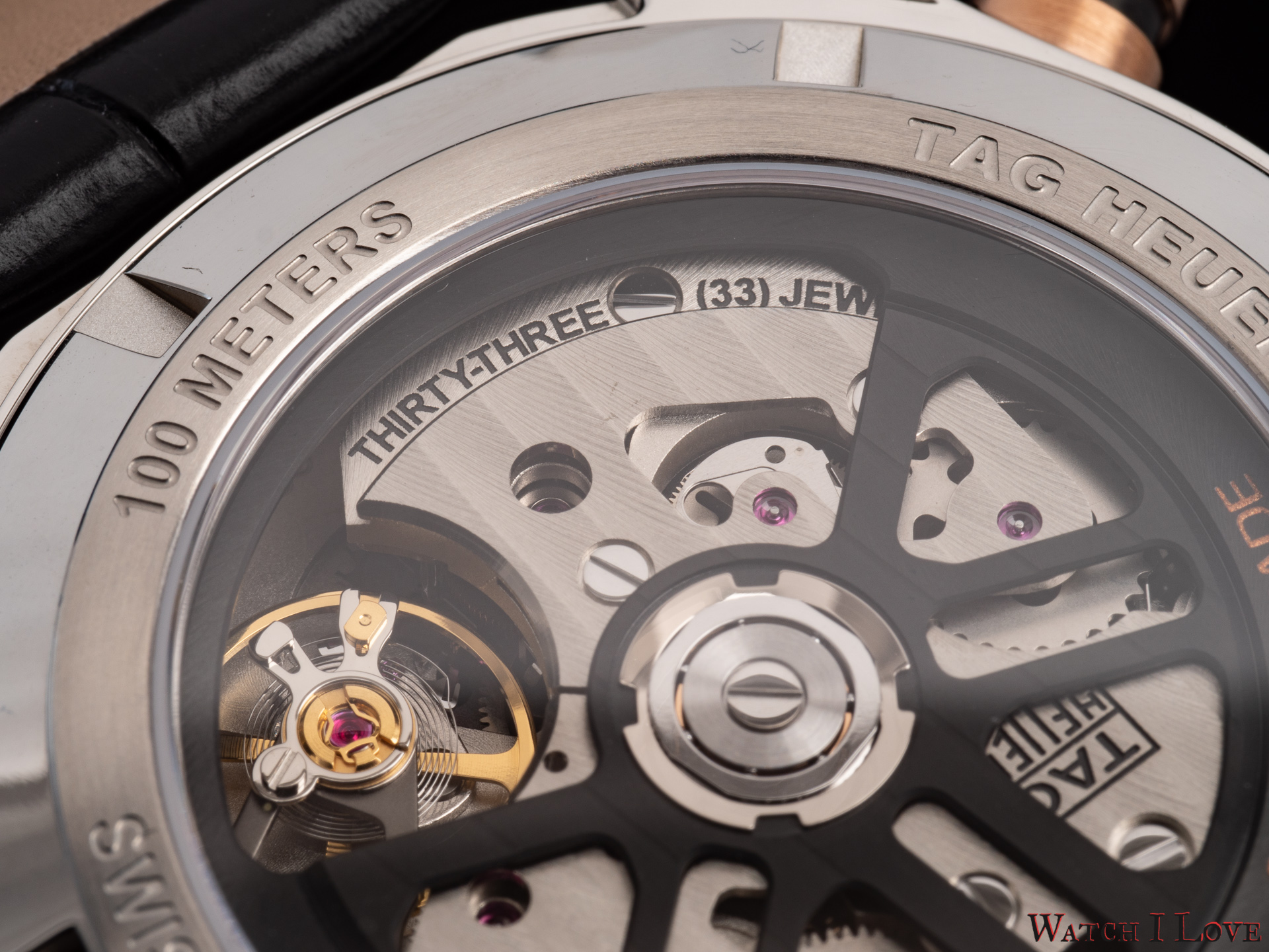 - Central hand and TAG HEUER applied logo plated with 18K 5N rose gold