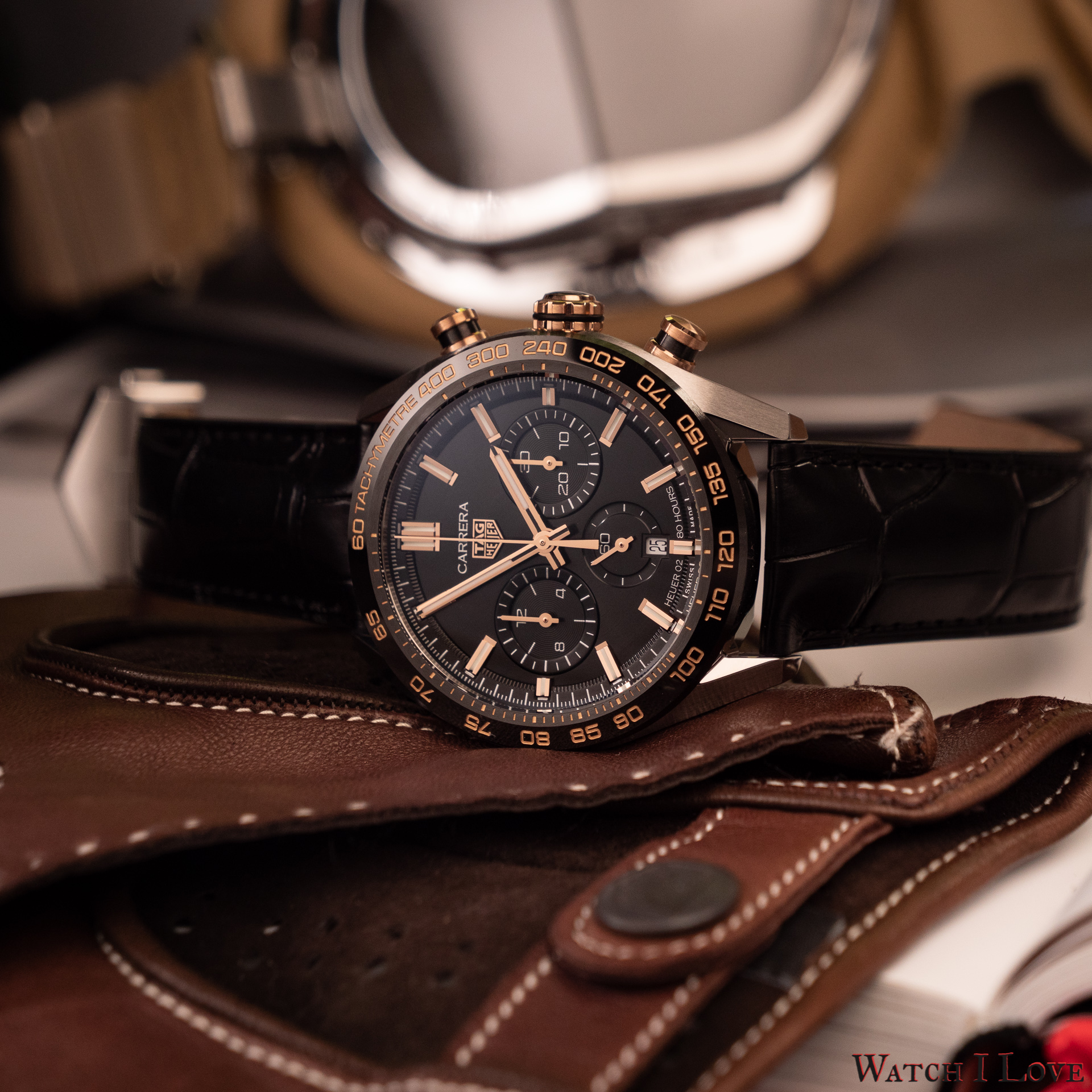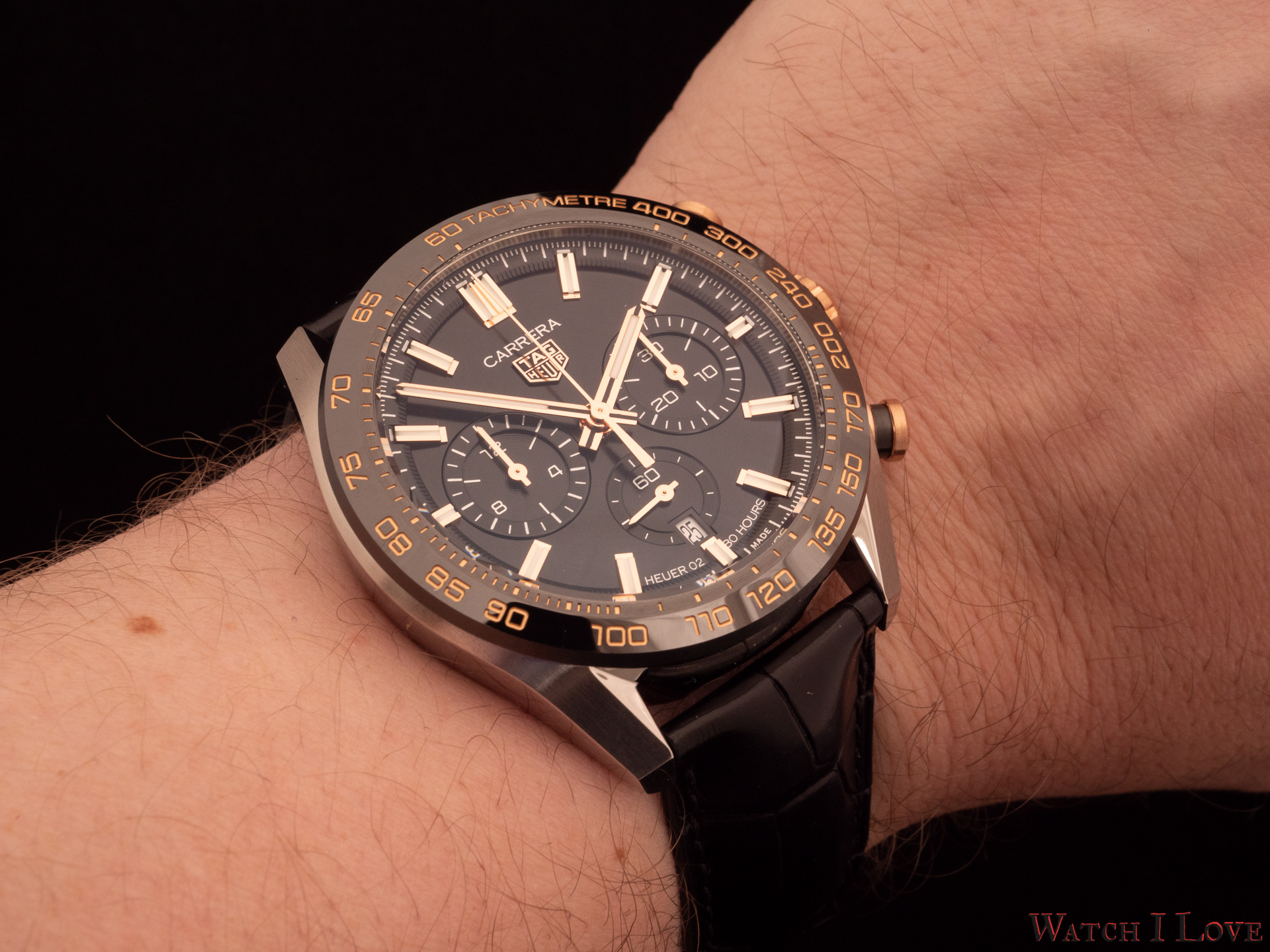 TAG Heuer Carrera Sport Chronograph 44 mm Calibre HEUER02 Automatic is an astonishing piece and Reference CBN2A5A.FC6481 is my favourite of the series. I was thrilled when I found out that it is available for a review loan. I find the combination of black & gold simply superb on this piece.