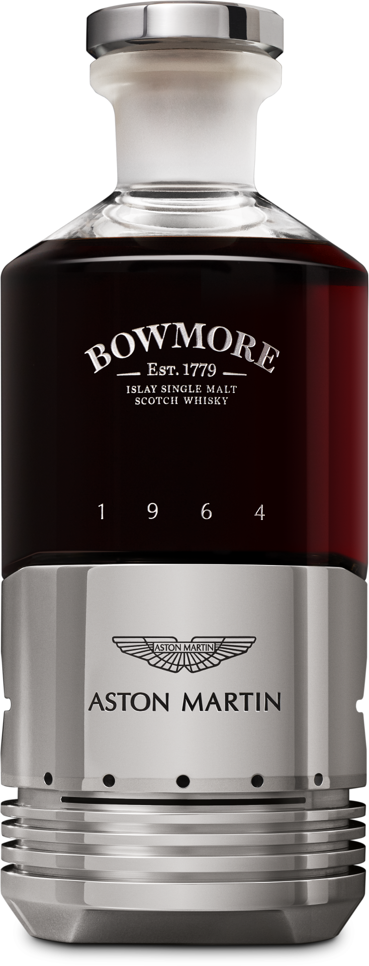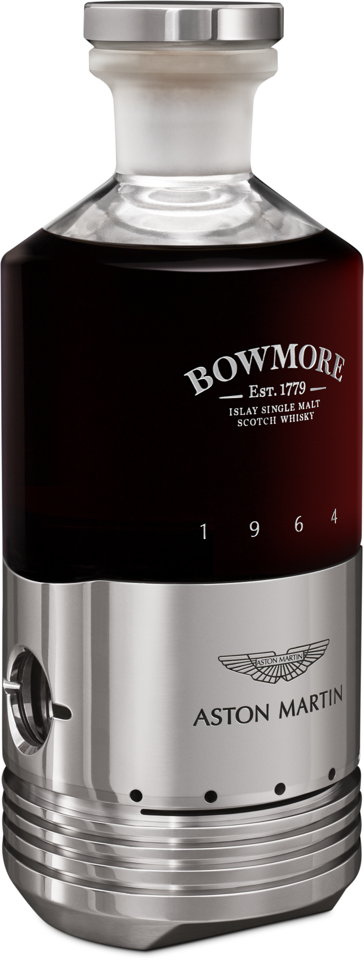 A beautifully inspiring masterpiece; this unique, handcrafted vessel houses an equally exceptional single malt, Black Bowmore. Inspired by the past, but truly breath-taking in today’s world. The significance of 1964 is paramount. This represents a truly defining era of evolution for both Bowmore and Aston Martin.