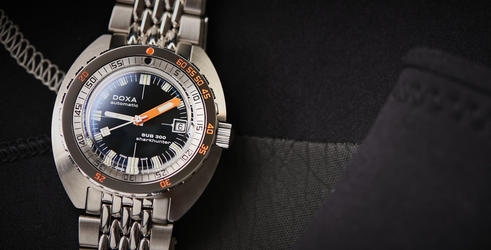 Resistant to wear and tear and purpose-designed, the strap features a folding clasp with the “DOXA fish” symbol and comes with a diver’s extension for quick and fiddle-free adjustment over a wetsuit.