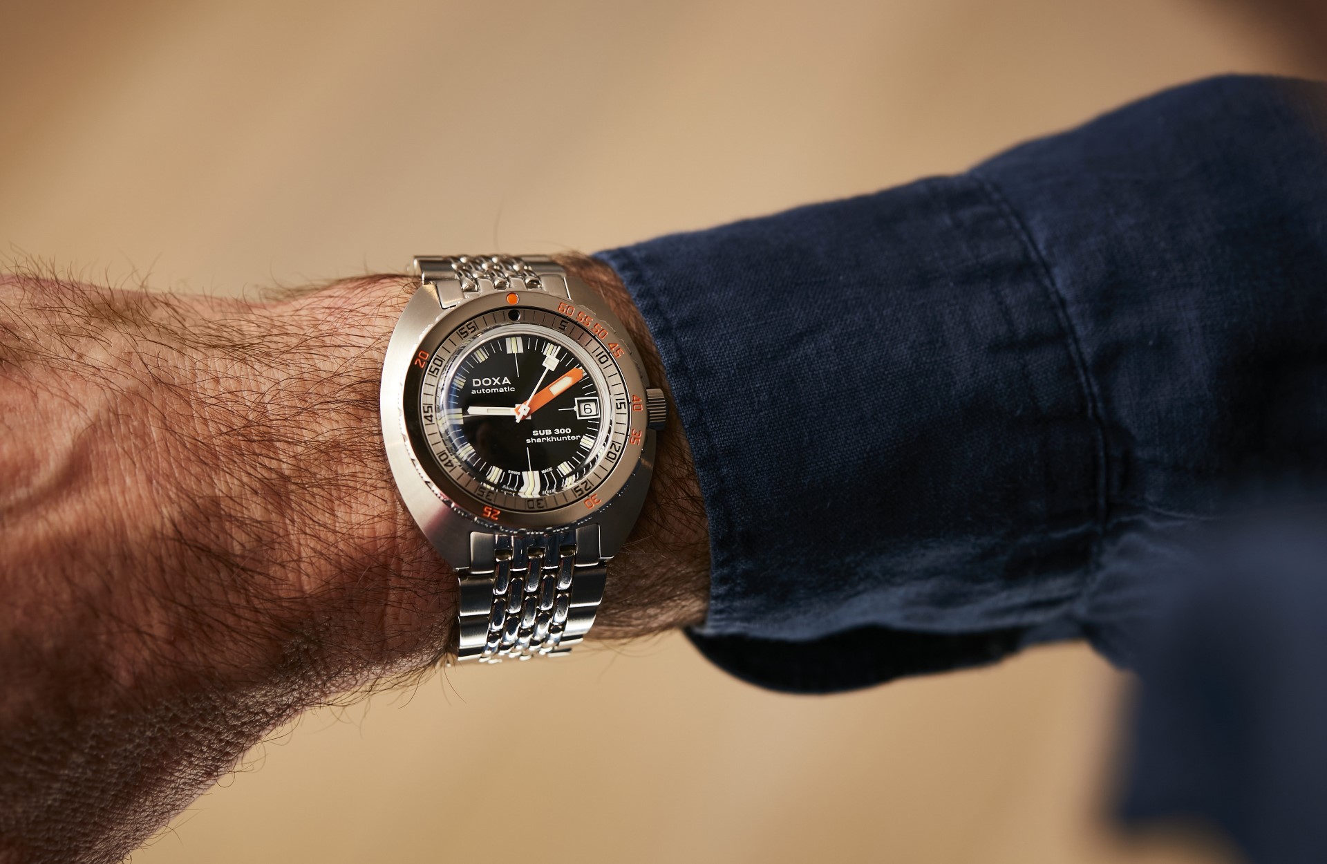 The DOXA SUB 300 has a diameter of 42.5 mm and is water-resistant to a depth of 300 meters for maximum freedom of undersea exploration.