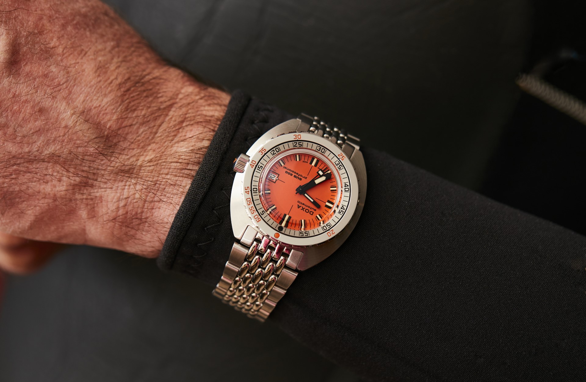 - 6 colours, 12 versions – turquoise, yellow, navy, silver, black, and of course the famous “DOXA Professional Orange” of the first SUB 300 that came out in 1967.
