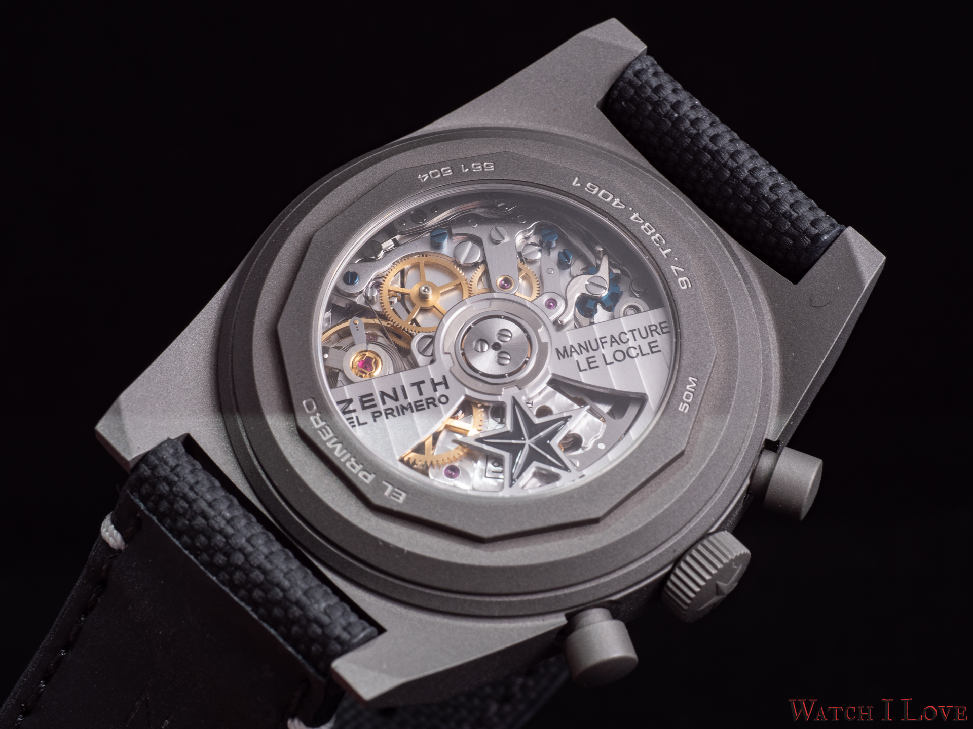 Mention: The watch presented was not particularly cleaned or prepared for the shooting and presents (or not) all the wear of several hands. The watch was "molested" during a Zenith press event. It is the perfect oportunity to see how it behaves in time. I am particularly curious to find how the scratches will develop in time. From my personal expirience with my personal micro-blasted titatnium pieces, the case will by very scratch resistant and the marks will be minimal.