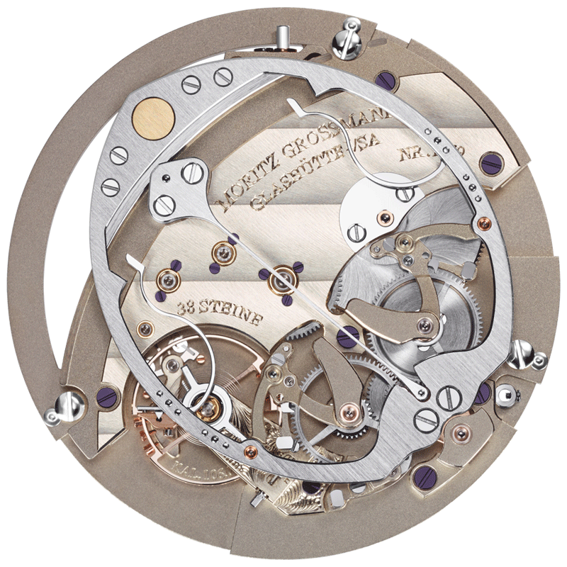 - The open hammer body in the centre brings the perfection of Grossmann’s watchmaking craftsmanship and the highest level of finish to life