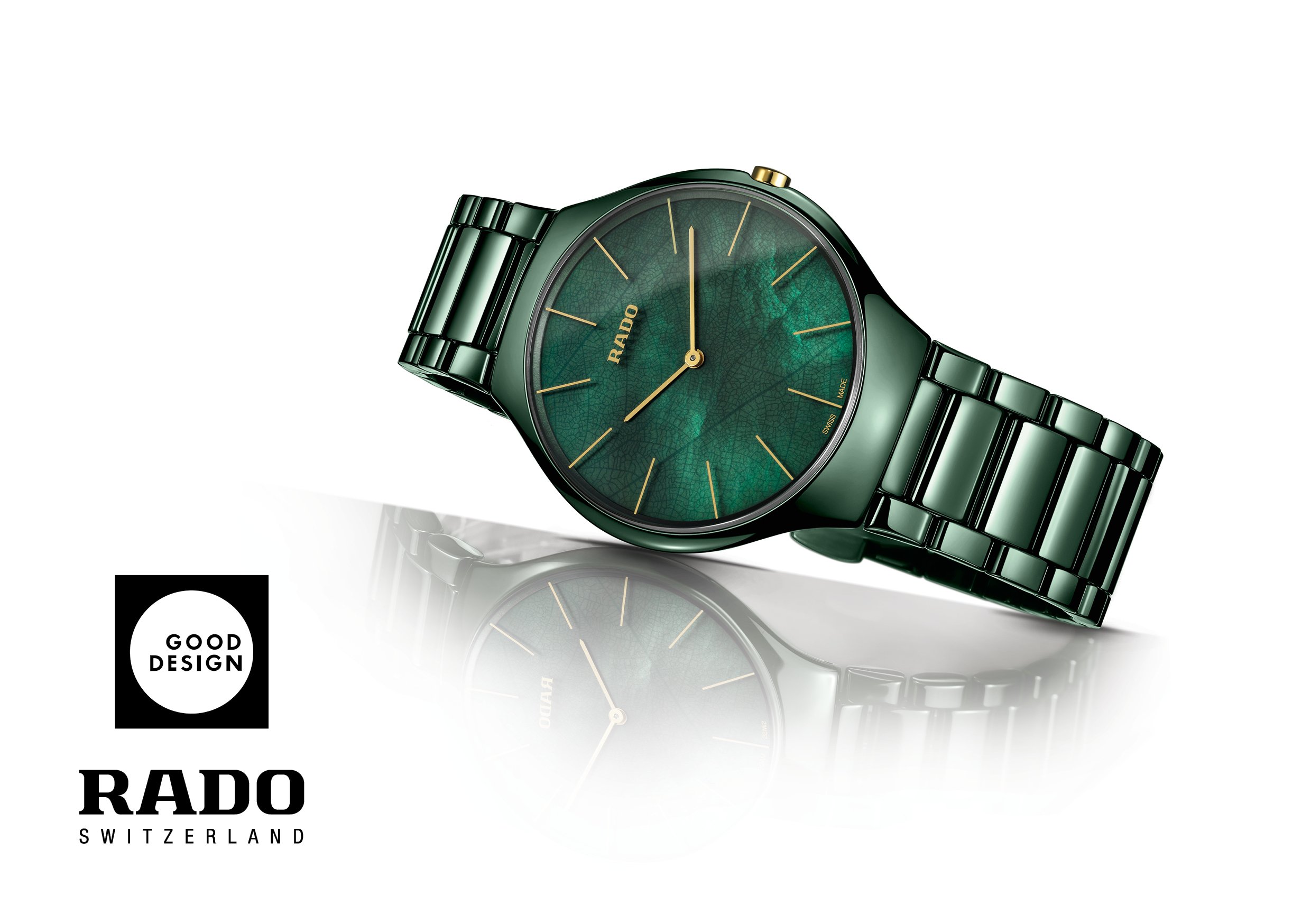 Rarely have the award and the prize winner been better suited to each other: our emerald green Rado True Thinline Leaf was presented with the prestigious GREEN GOOD DESIGN Award by the Chicago Athenaeum Museum of Architecture and Design and the European Centre for Architecture, Art, Design and Urban Studies. Under the motto “Build a better world now”, the coveted award honours outstanding architecture and product designs that leave a lasting impression with their “green” concept.
