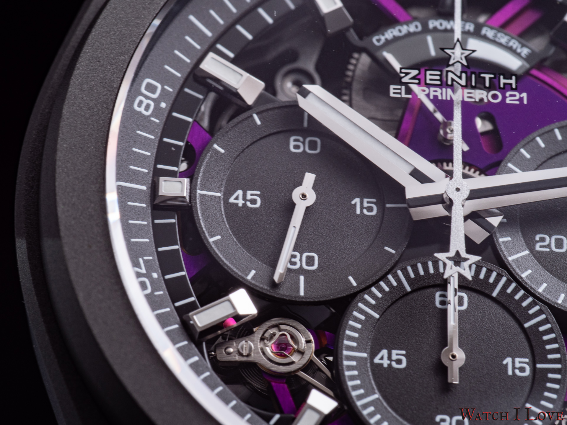 One of the perks of modern engineering is the ability to play with the finishes. Colour was a limited domain until recently (not that now is possible any wild scheme, but the degree of liberty is much higher). Zenith grabbed the chance with both hands and dared to experiment. The result is an unusual colour scheme for a watch – shades of violet and grey.