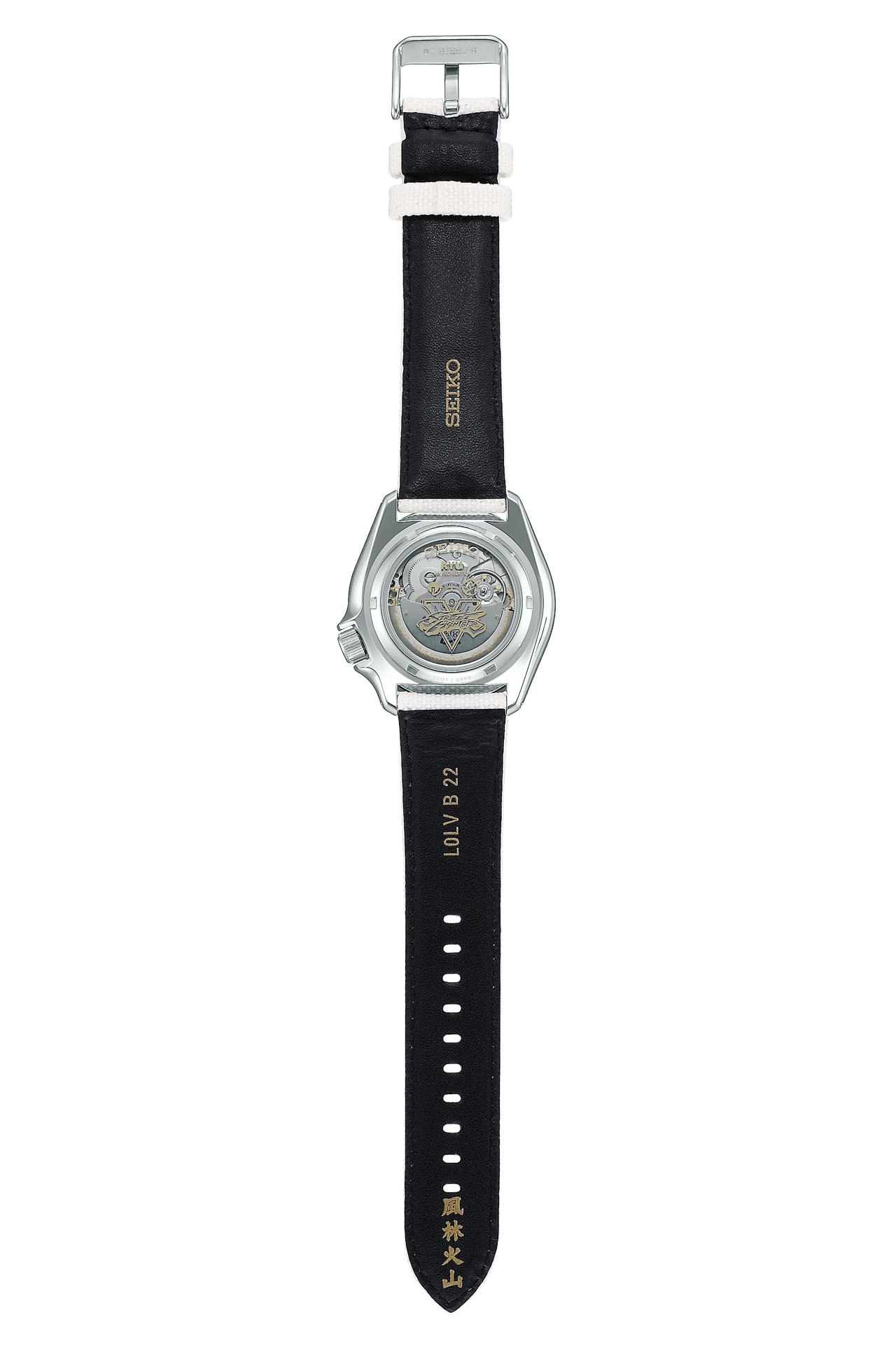 The watch’s design is inspired by his classic “do-gi” Judo uniform, and the scratch-like marks across the bezel reflect the tough training required of Ryu to become a “true fighter”. At the 9 o’clock position is a simplified version of the iconic “Furinkazan” kanji characteristics on his gloves, which signify “as swift as the wind, as gentle as forest, as fierce as fire and as unshakable as the mountain.” These four characters are also printed on the back of the strap while the controller command for his special move, “Hadoken” is discreetly printed on the case back.