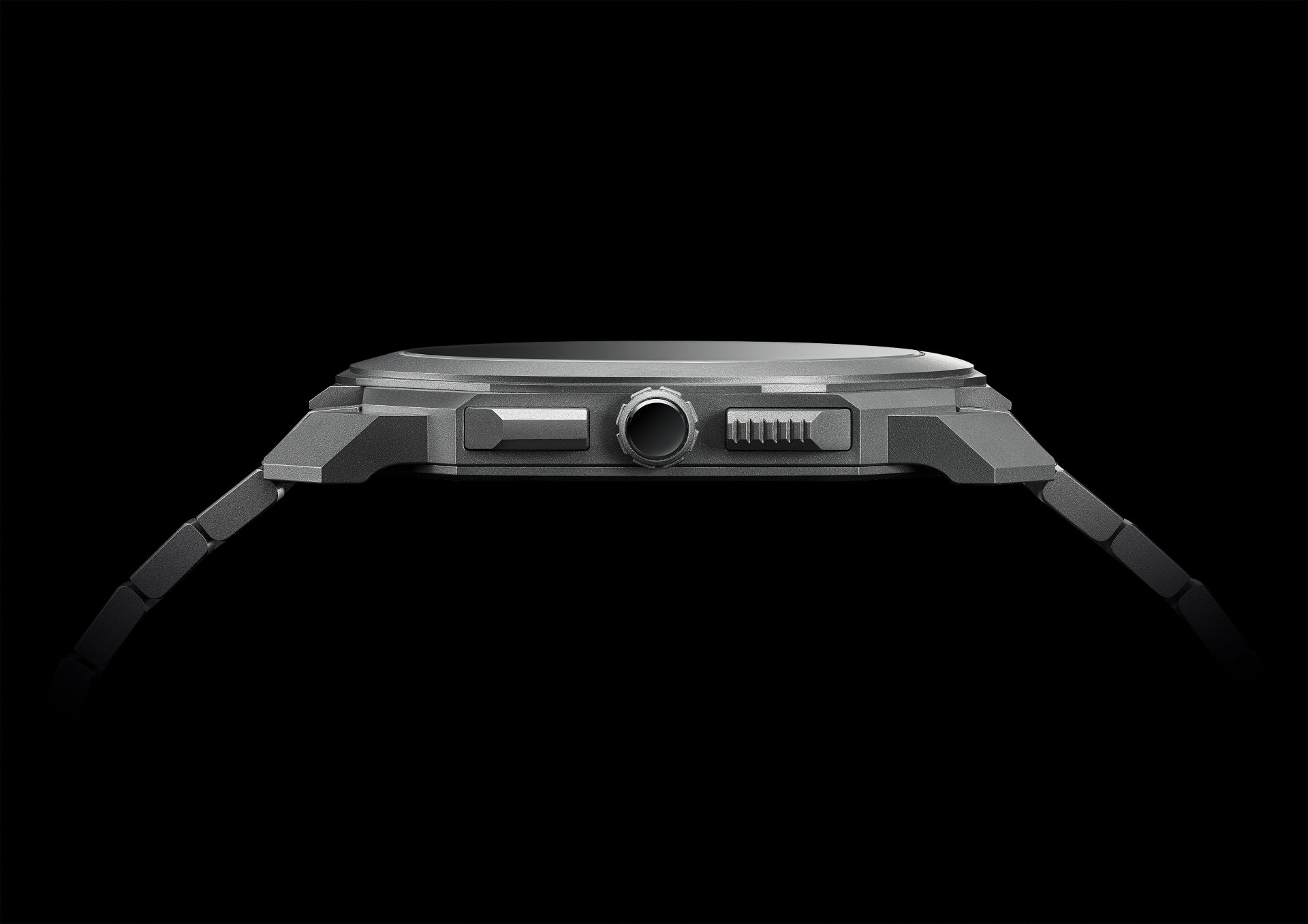 - Sandblasted titanium crown and push buttons