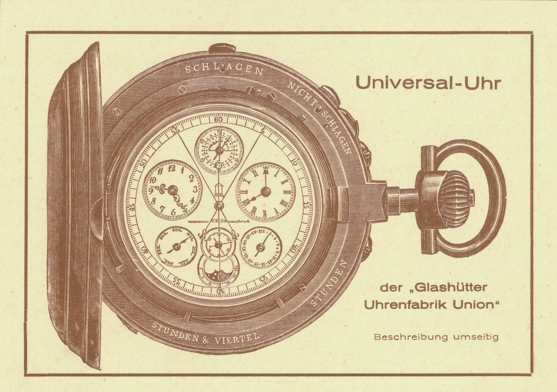 With Julius Bergter in charge, the “Universaluhr” (also known as the Universal Watch) was finished and put up for sale at 12,000 German marks. Two other movements remained unfinished.