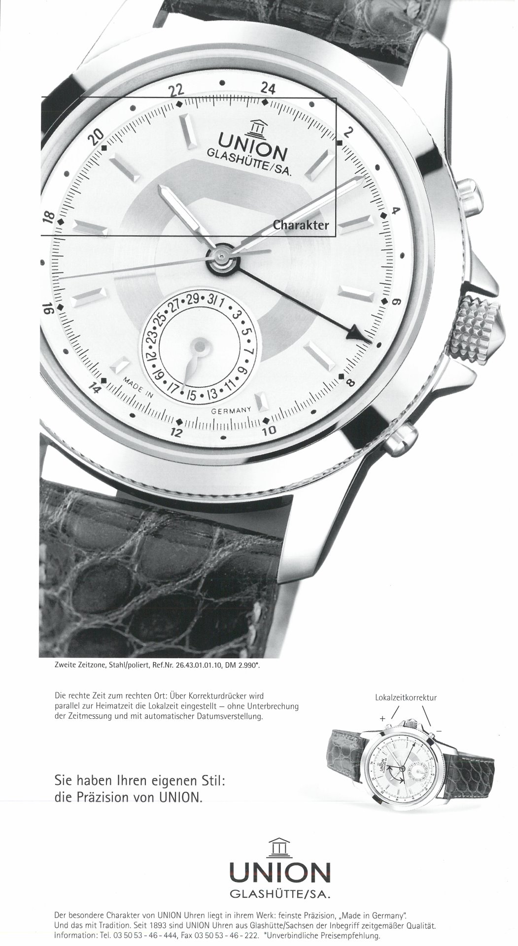 On 13th August 1996, Union Uhrenfabrik GmbH was founded again as a subsidiary of Glashütte Original.