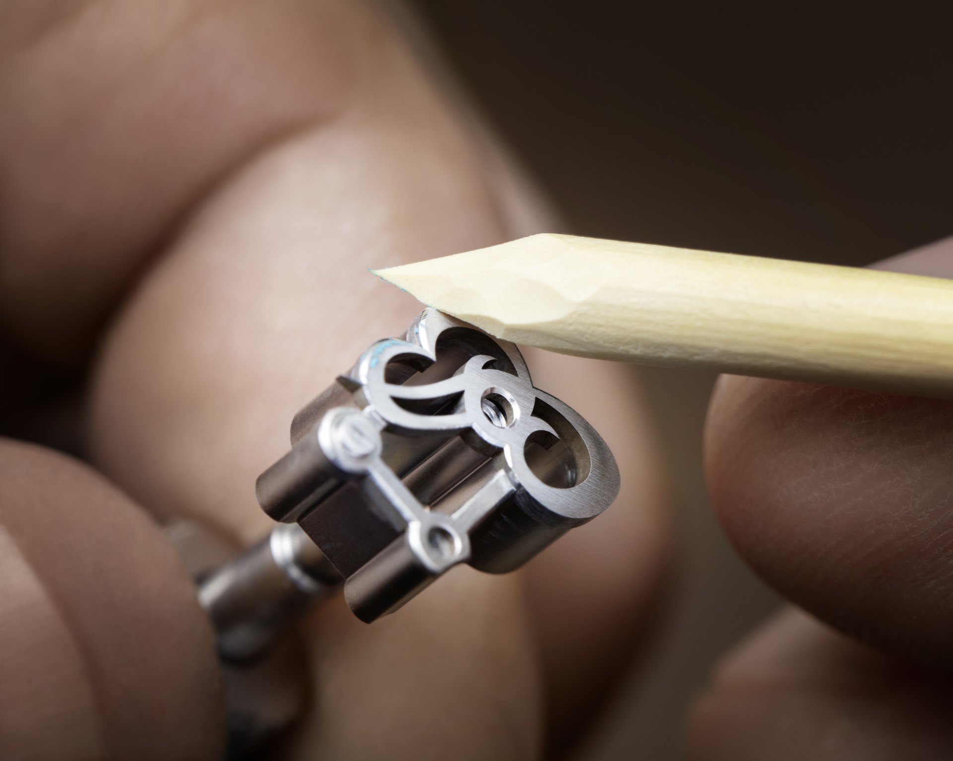 This spectacular staging makes this calibre one of the most complex systems ever developed by the Breguet Manufacture. Its mobile nature, for example, forced the engineers to entirely review the manual winding mechanism, which now relies on independent wheel trains. One of the two barrels is equipped with a friction bridle, similar to those used on self-winding watches. This astute construction allows the spring to disengage once coiled, until the second barrel is fully wound. Lastly, the crown employs a dynamometric security system, which prevents excessive winding of the springs.