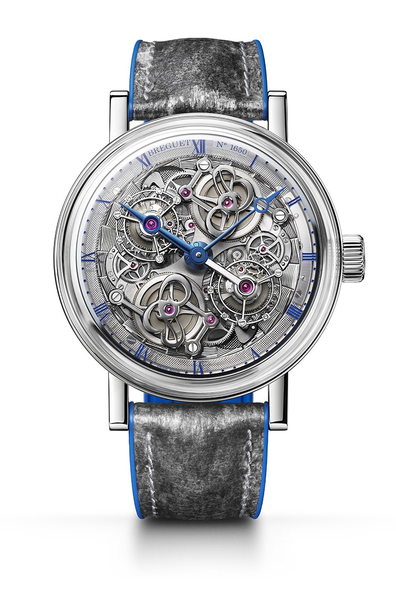 Breguet Classique Double Tourbillon Quai de l’Horloge – This new model blends mechanical virtuosity with aesthetic mastery: entirely exhibited, the movement reveals two tourbillons that set the whole plate in motion through a central differential. Each component is hand-finished, while the back of the movement is engraved with the “House on the Quai”, the Parisian building where Abraham-Louis Breguet fulfilled his life’s work.