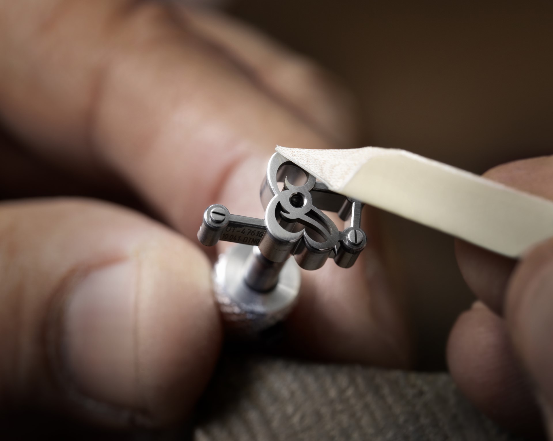 The timekeeping parts of this Double Tourbillon 5345 are, incidentally, very similar technically to the original creation. The steel balance springs are endowed with the characteristic terminal curve, allowing for concentric development of the spring. It was a solution devised by the founder himself, which has since become known as the Breguet overcoil. Even now, the balance spring is still shaped by hand, while the different calibrations are also done manually, such as balancing the tourbillon cages. These carriages are the only ones in the current collection that feature a framework in black-polished steel – the highest degree of finishing in fine horology.