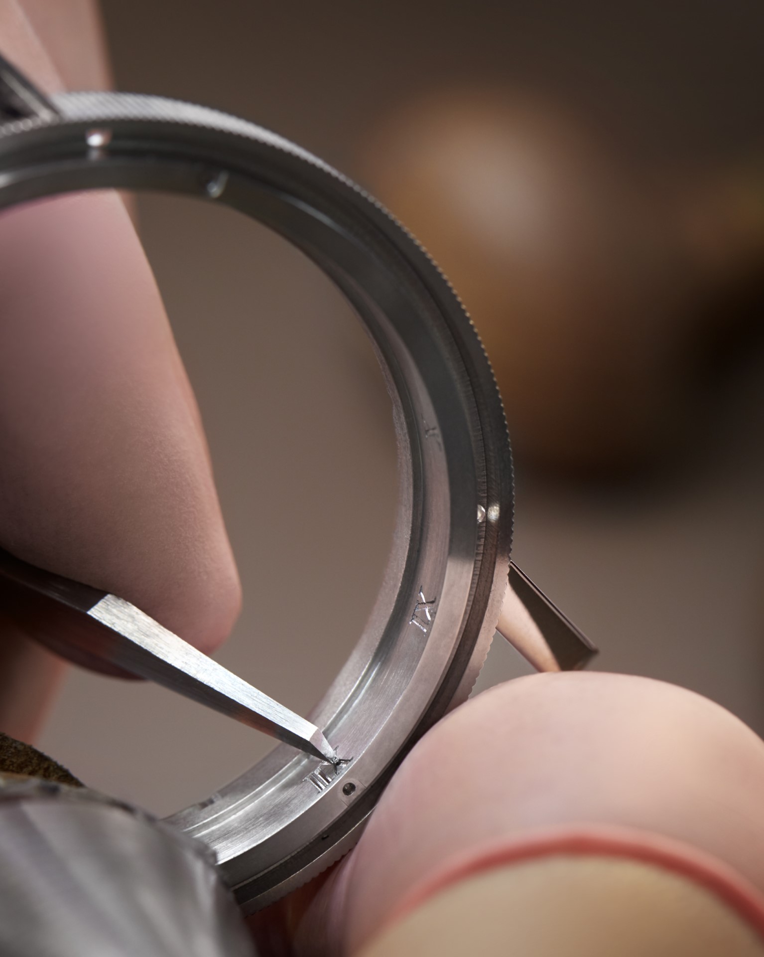 - On the reverse side of the movement, an engraving carried out by hand depicts the building on Quai de l’Horloge in Paris.