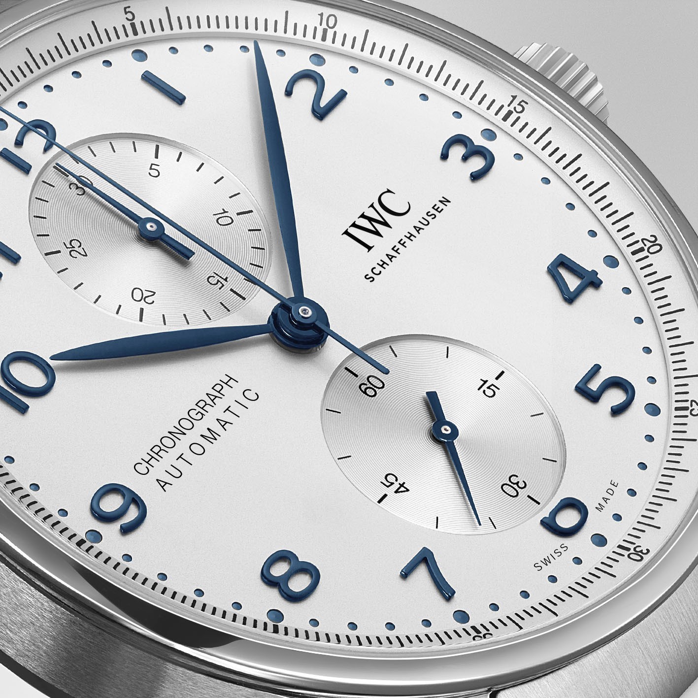With the Portugieser Chronograph, IWC established a sportier design expression in the Portugieser family more than 20 years ago. Thanks to the clear and open dial with the two recessed totalisers at 12 o’clock and 6 o’clock, as well as the inner flange printed with a quarter seconds scale, the timelessly modern chronograph has turned into one of the most popular models from Schaffhausen.