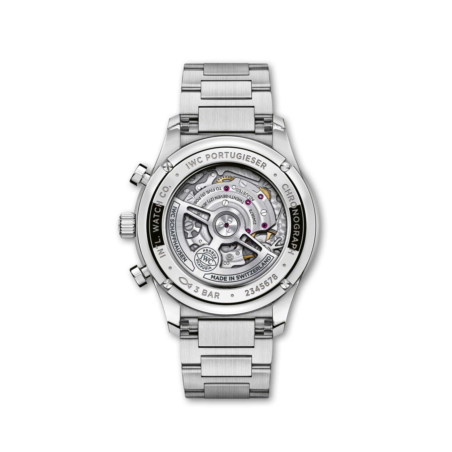 The new stainless steel bracelet is available as an accessory for all new models of the Portugieser Chronograph (Ref. IW3716).
