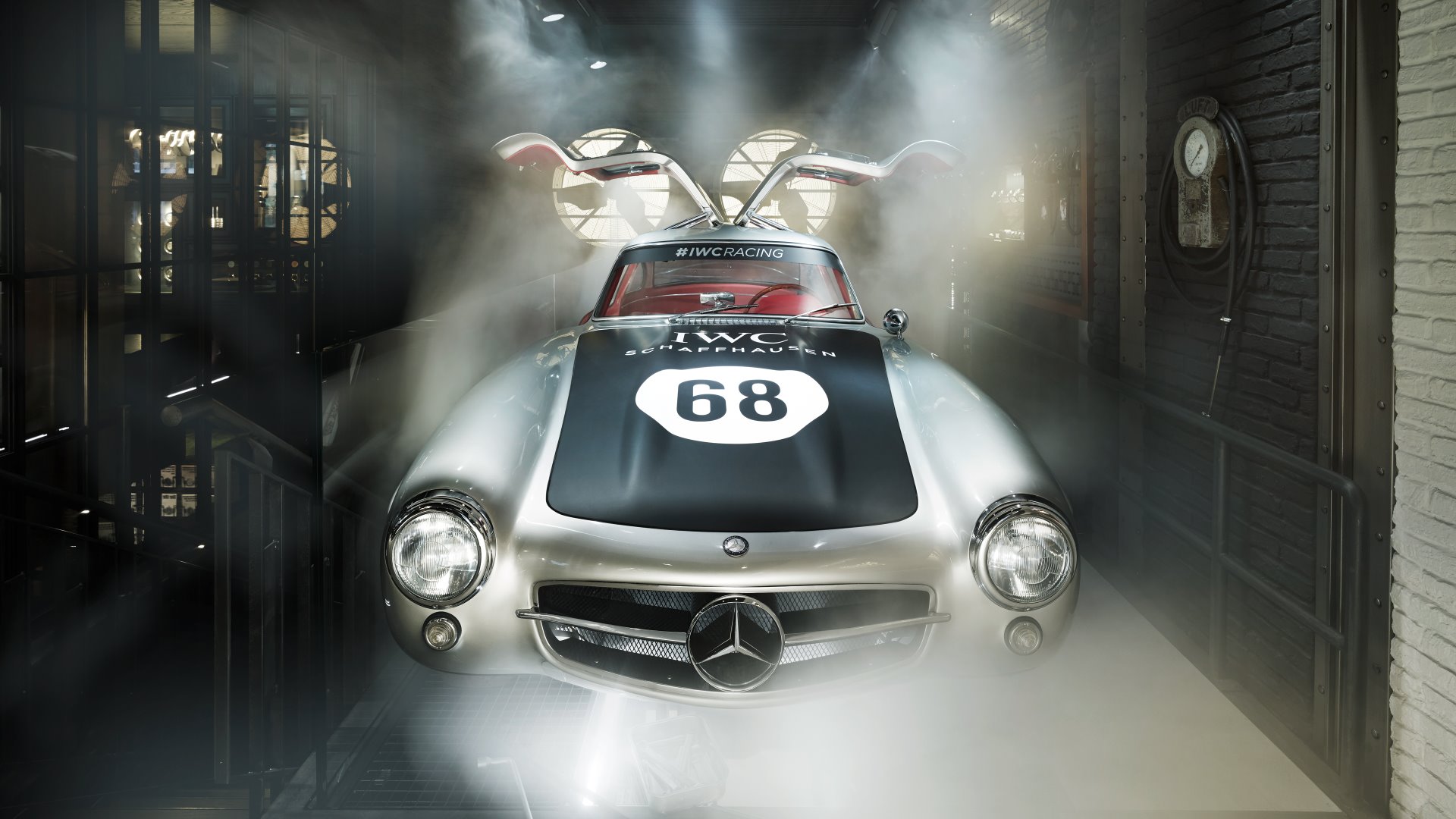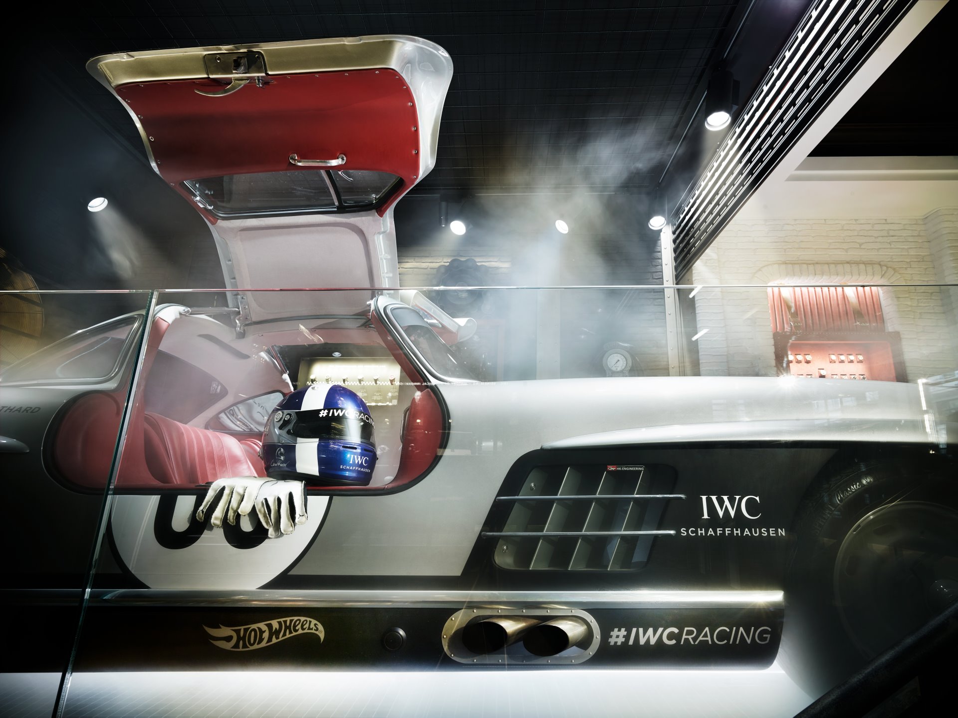 The ‘Garage’ at the back of the storehouses the 300SL Gullwing and the VR driving experience as well as the Hero Wall – an animated presentation of IWC racing drivers, their legendary victories and timepieces.