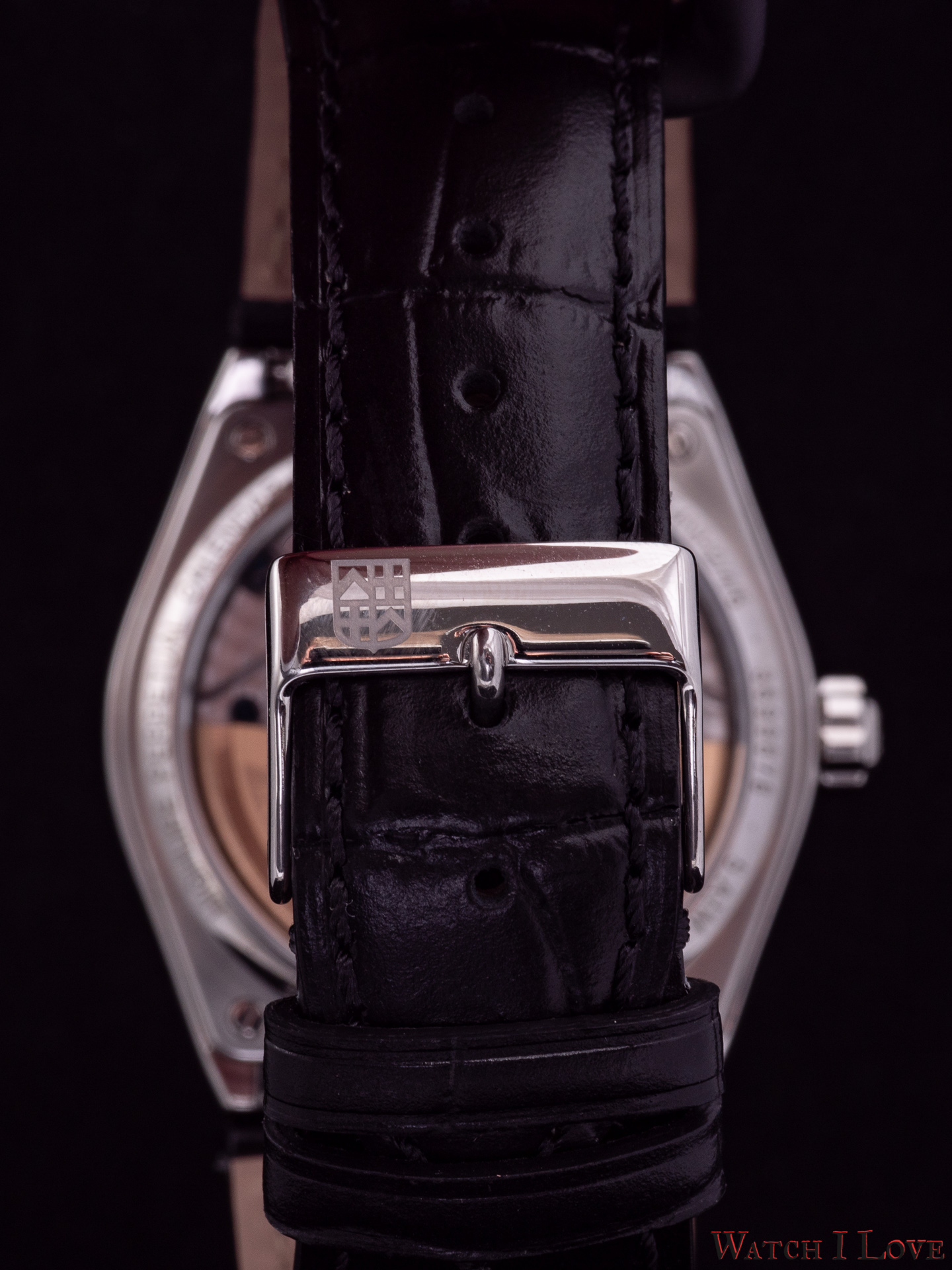 - Black alligator leather strap