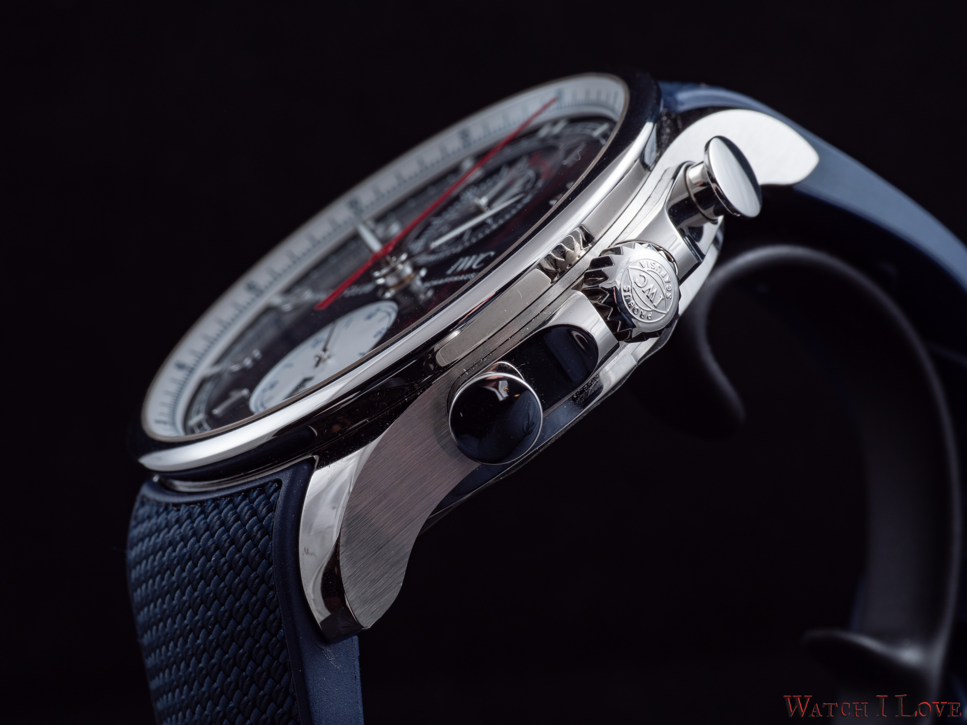 One of the eye-catching details of the IWC Portugieser Yacht Club Chronograph Edition “Orlebar Brown” is the strap. The blue rubber strap with textile inlay looks charming and offer very comfortable wear. It contributes to the smaller wear of the elegantly-proportioned case.