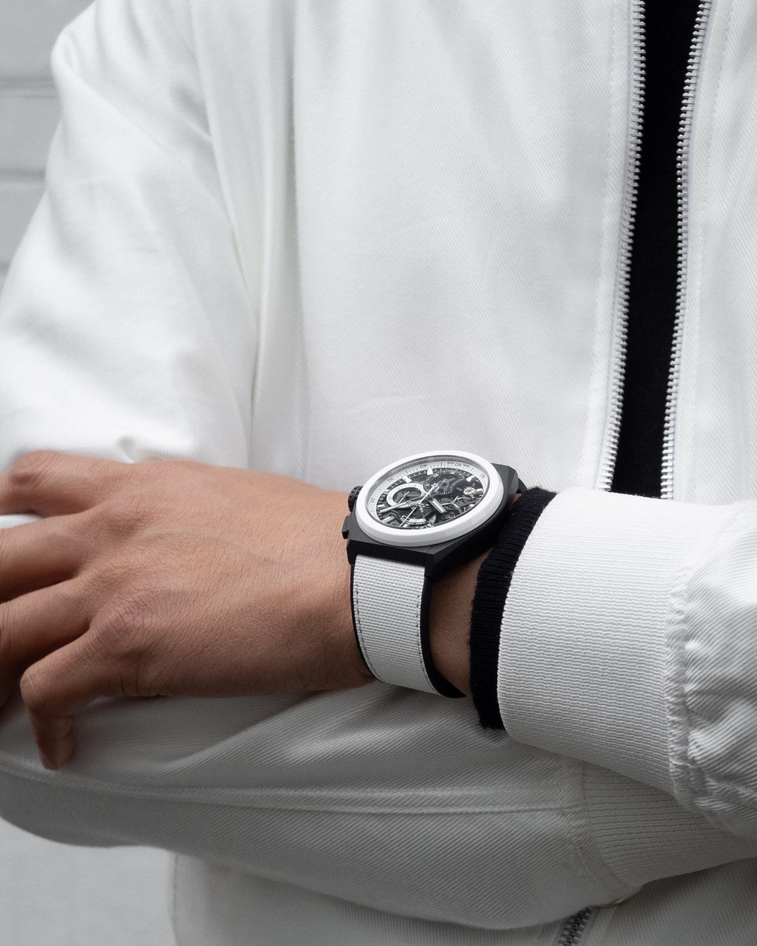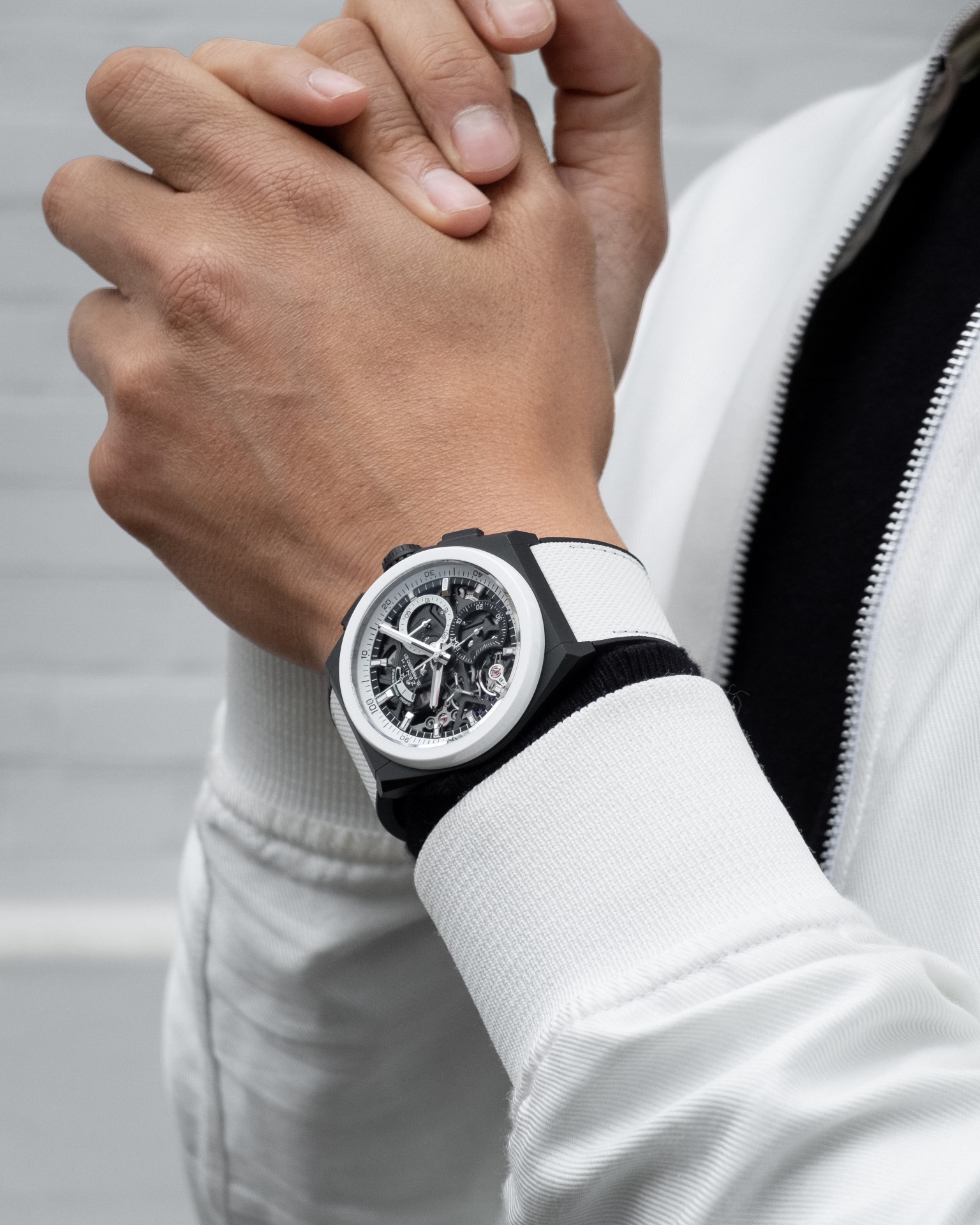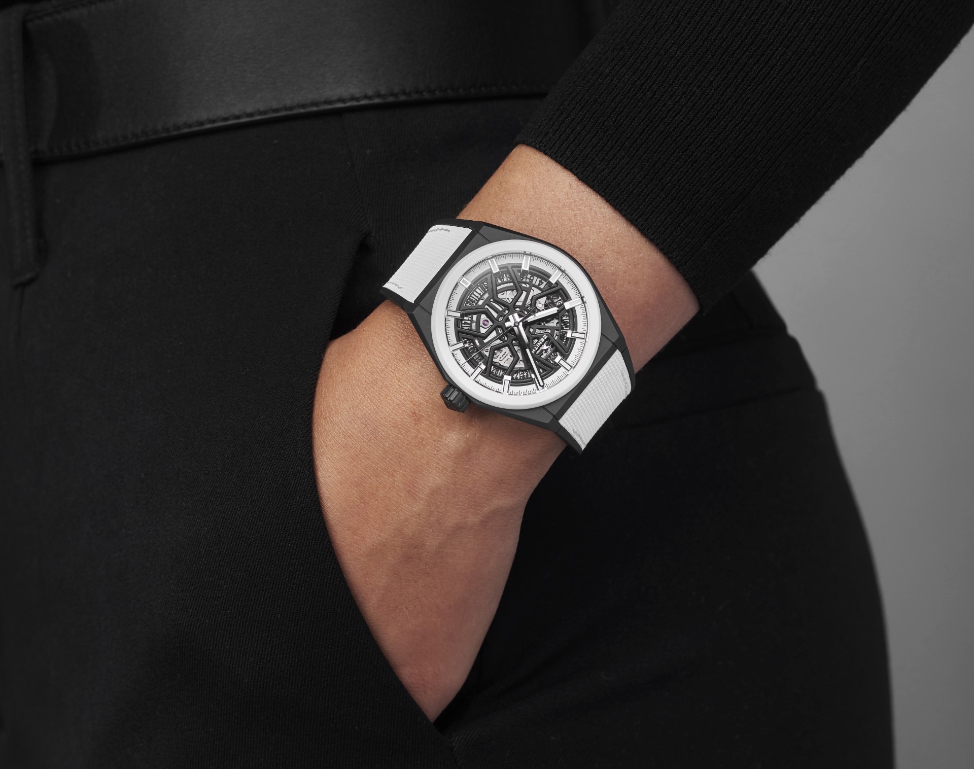 Black & white is far more than just a choice of tones. It’s an entire design language that echoes towering urban landscapes and edgy art and fashion movements. While the DEFY 21 and DEFY Classic have gone through numerous iterations that incorporate exotic materials and vibrant colours, the Zenith Boutique-exclusive Black & White editions take on a drastically different approach with an achromatic palette.