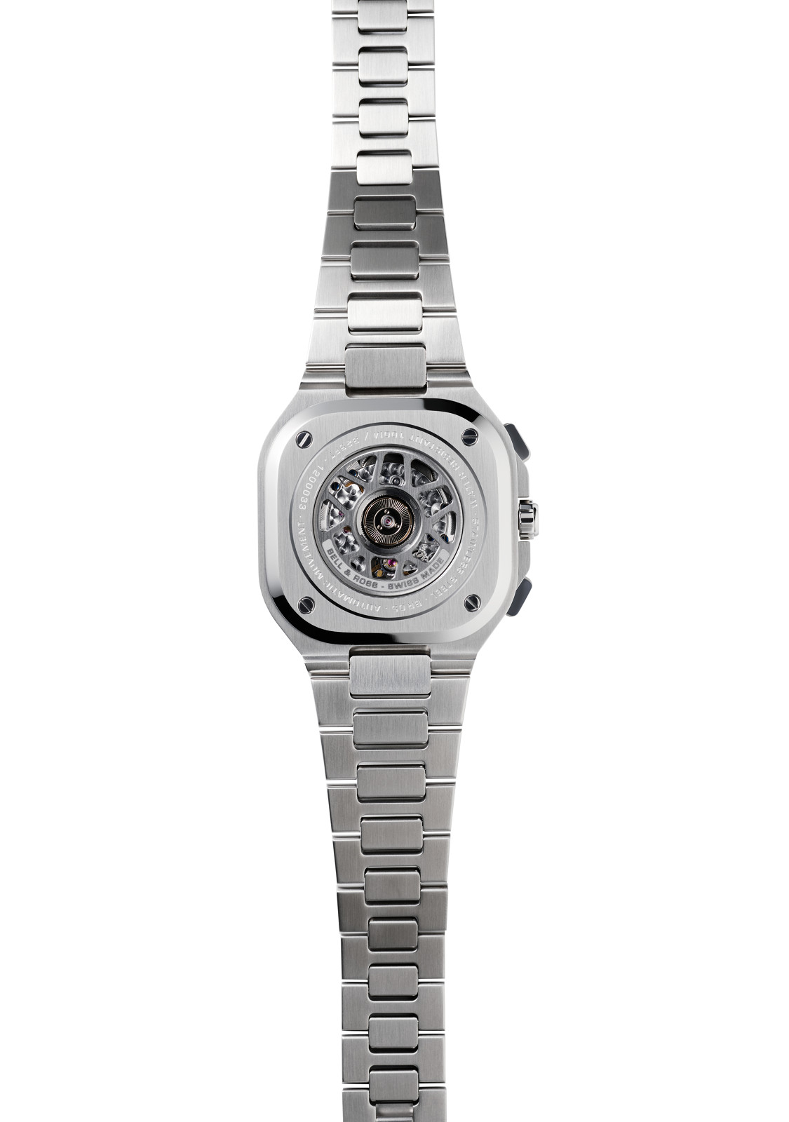 “The case and bracelet form one unit” explains Bruno Belamich, the brand’s Creative Director. “This type of design harks back to a category of watches which appeared in the 1970s and when infused with Bell & Ross‘ signature identity, the resulting graphic style is both striking and modern.“
