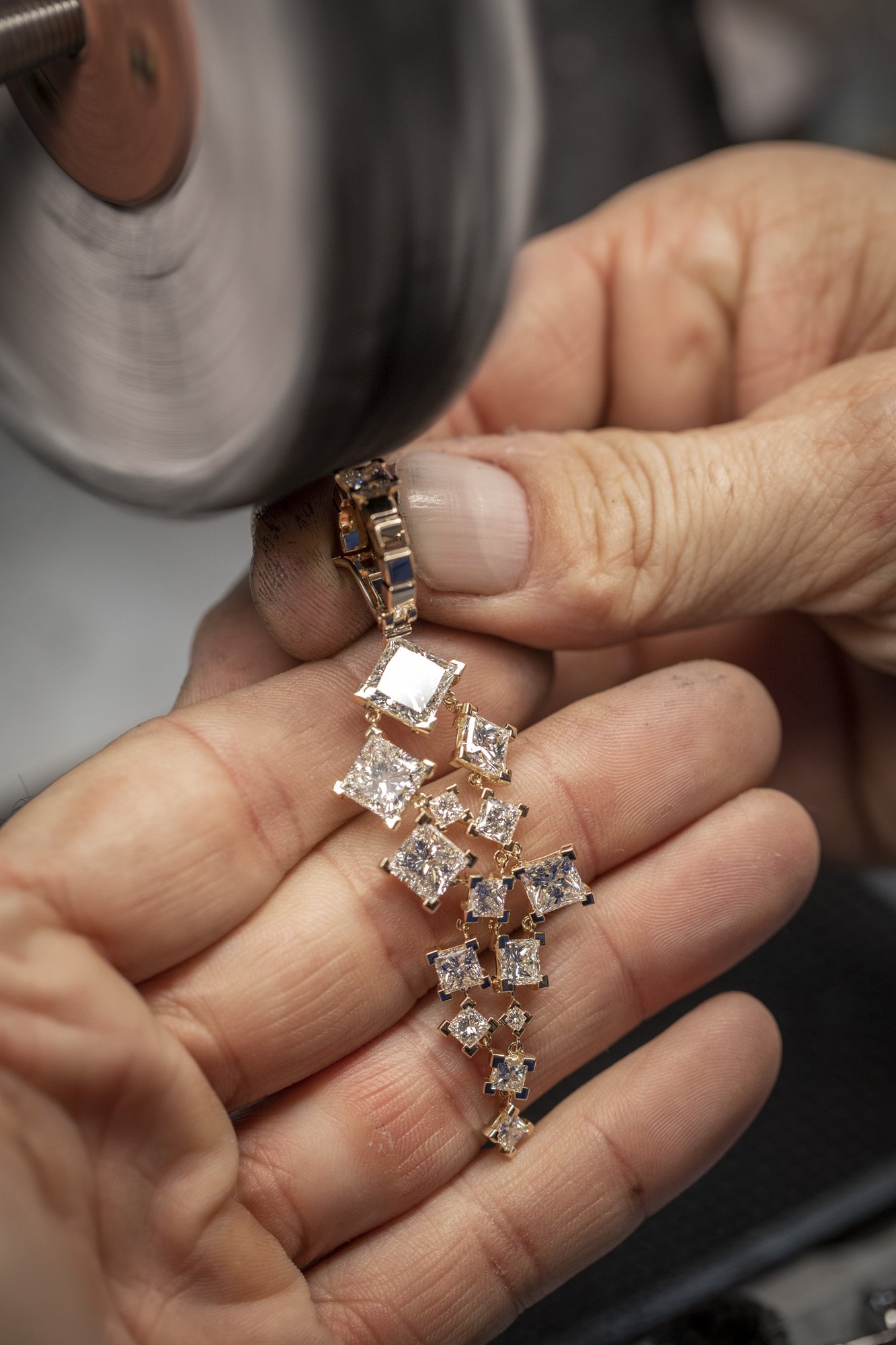 Caroline Scheufele left the artistic direction of the project entirely to Marion Cotillard and Eliott Bliss, while she provided responsibly mined materials along with the technical support required from her Artisans to ensure the manufacture of these jewels with their enduring radiance. Thus was born the Ice Cube Capsule by Marion Cotillard collection.
