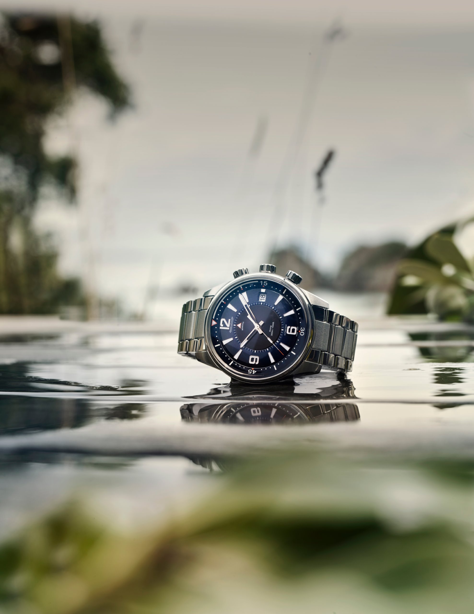 The robust capabilities and distinctive aesthetic of the new Jaeger-LeCoultre Polaris Mariner Memovox pay direct homage to Jaeger-LeCoultre’s first diving watches. Functionality has been enhanced, to be fully compliant with ISO 6425 diving specifications and water-resistant to 300 metres (30 bar), while the concentric rings of the gradient blue dial create a sporty and distinctively contemporary aesthetic. The self-winding movement, Calibre 956, is a direct descendant of Jaeger-LeCoultre’s first automatic alarm watch calibres. With a new peripheral gong designed to allow for a transparent sapphire case-back, the Jaeger-LeCoultre Polaris Mariner Memovox retains the signature “school bell” sound that lends such charm to Jaeger-LeCoultre’s alarm watches.