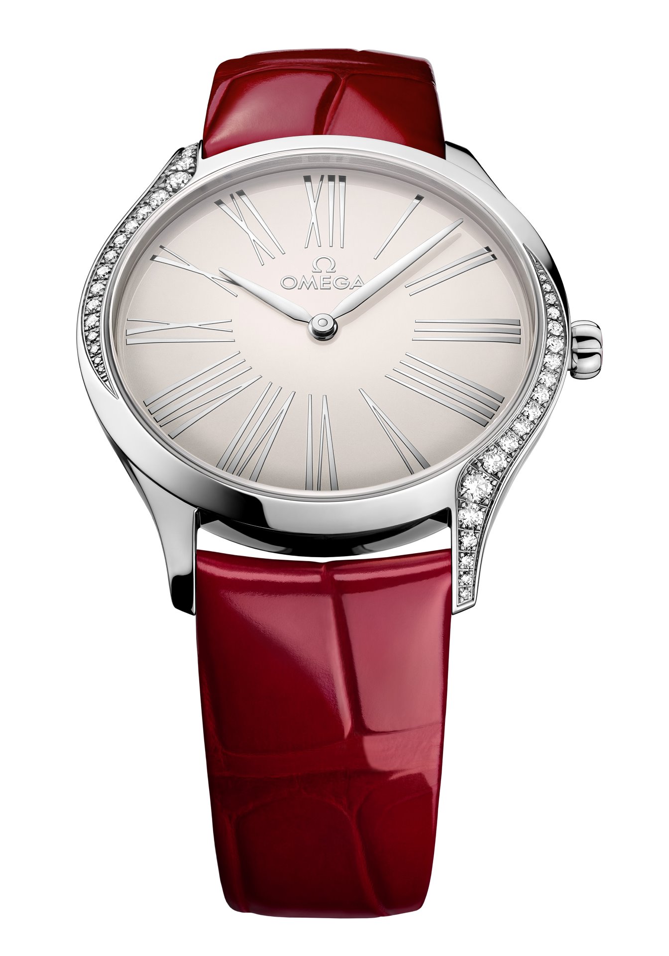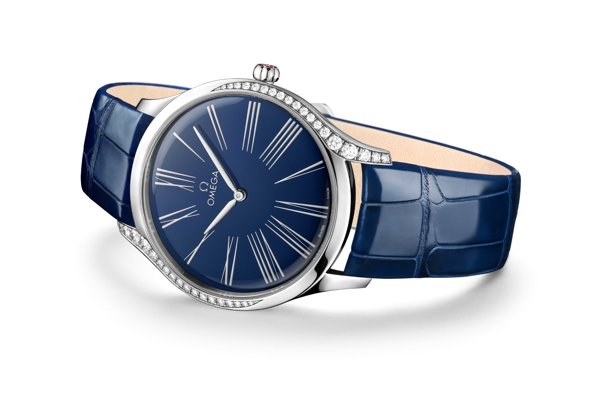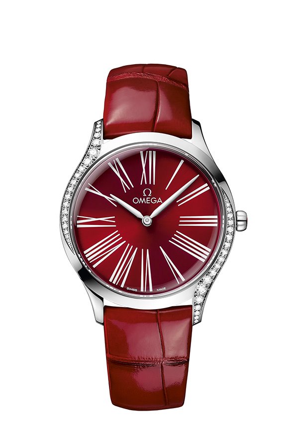 While the models are presented on leather or rubber straps, this charming collection is now available in a range of dial colours, including white, lacquered PVD blue, opaline silvery, lacquered red or brown – all set with the timeless appearance of Roman Numerals. Each model also comes with OMEGA’s full 5-year warranty.
