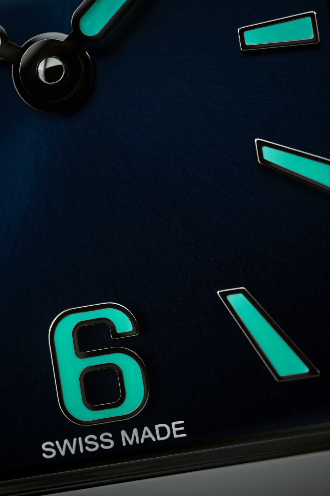 • Baton-style hour and minute hands in 18K white gold with Superluminova® luminescent coating