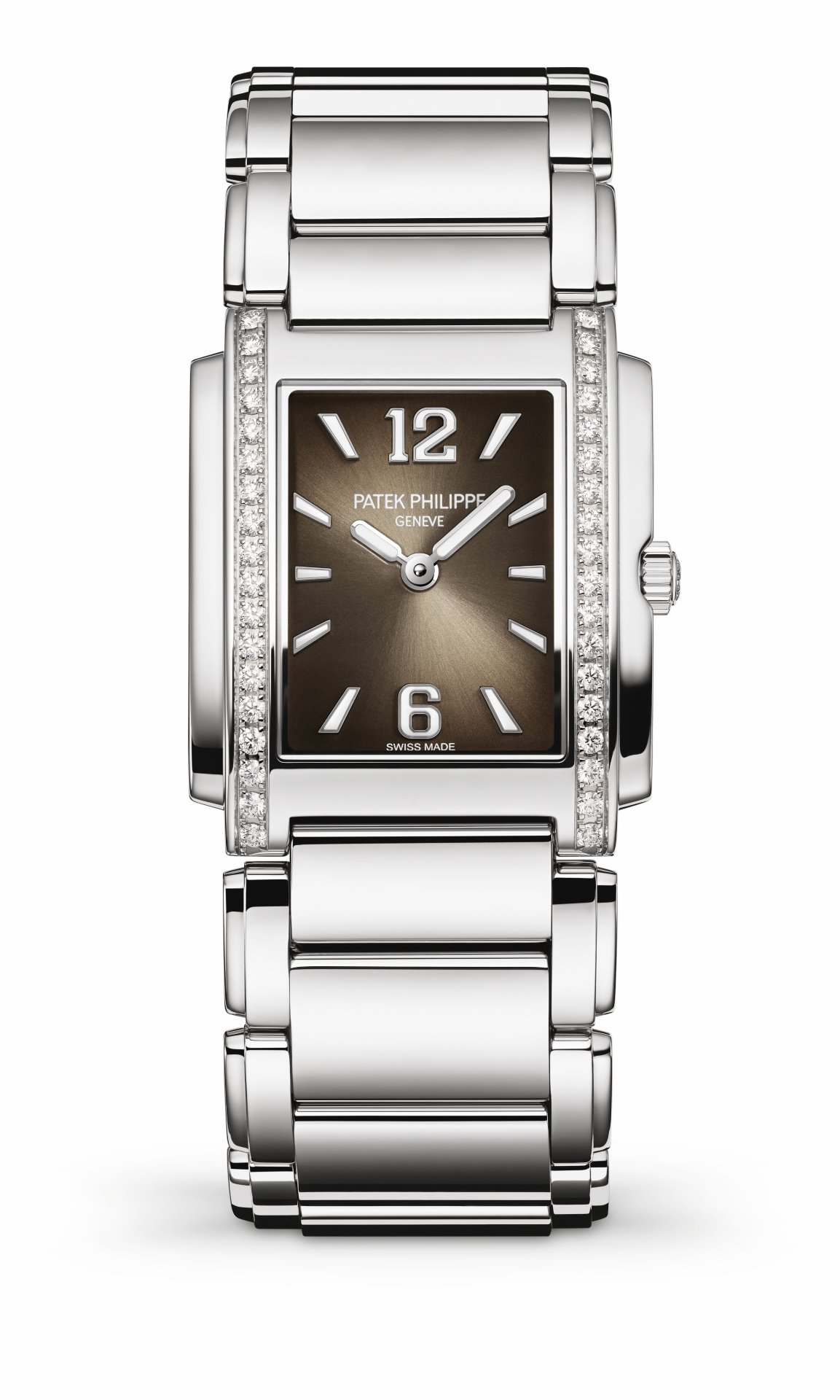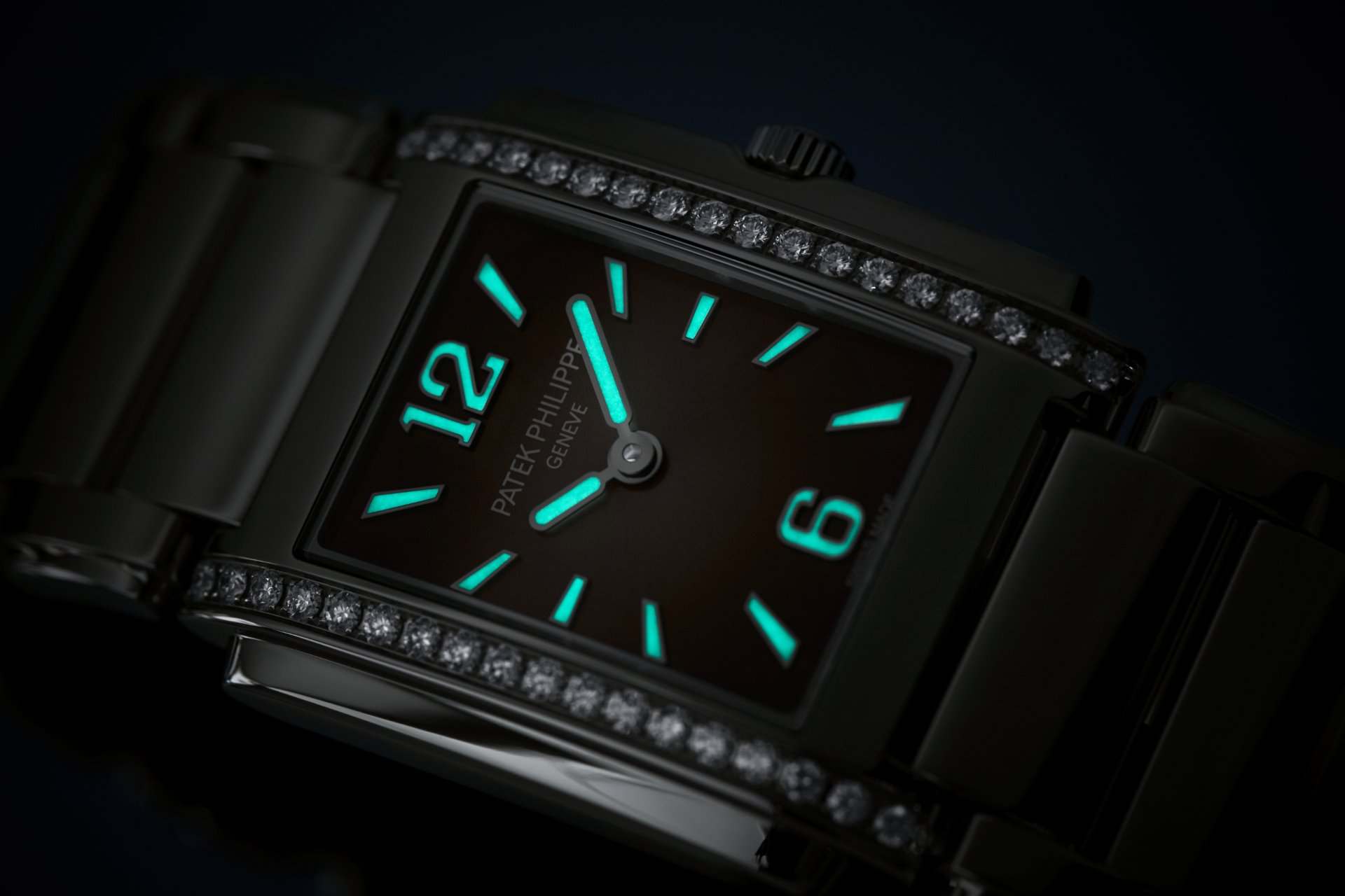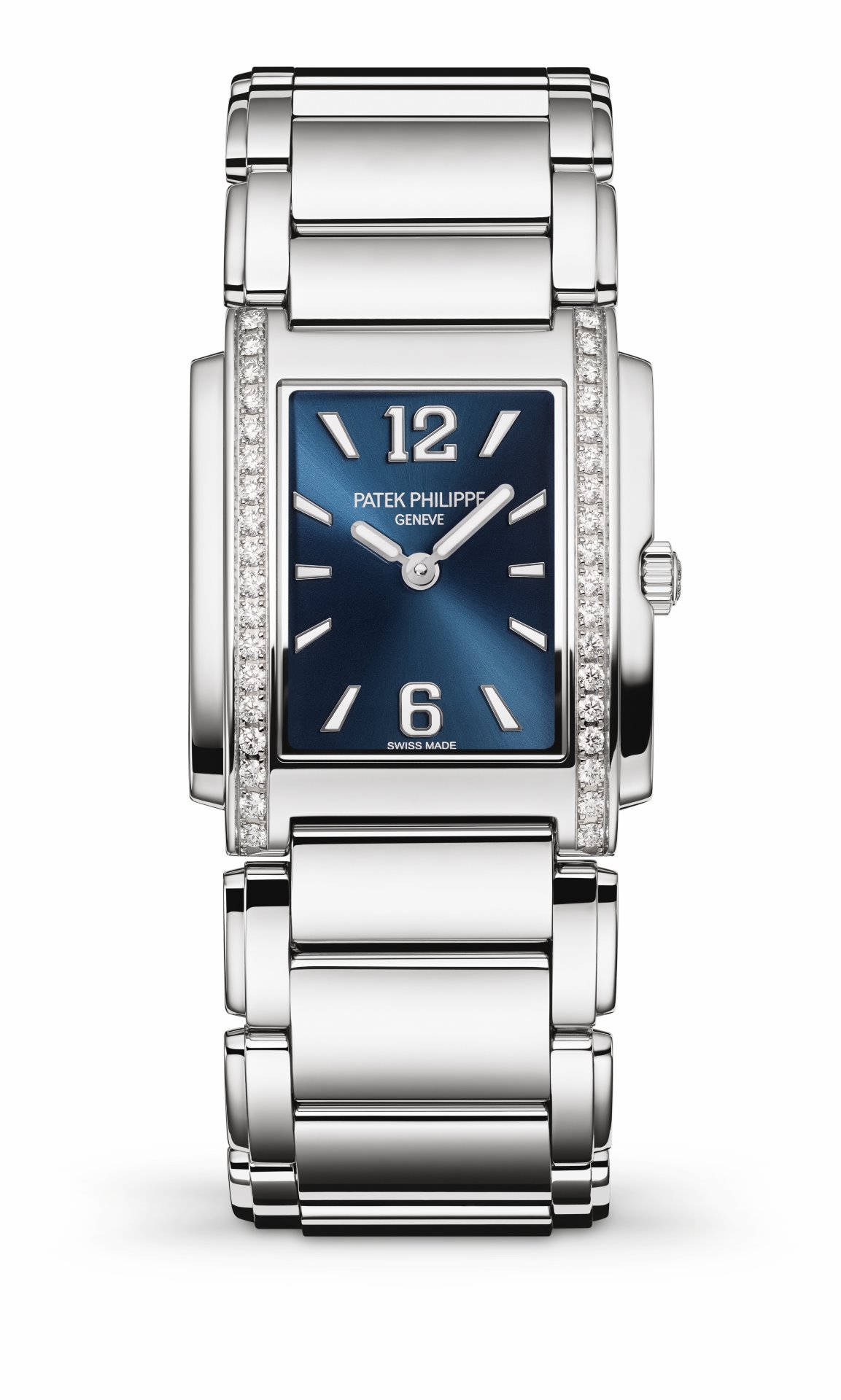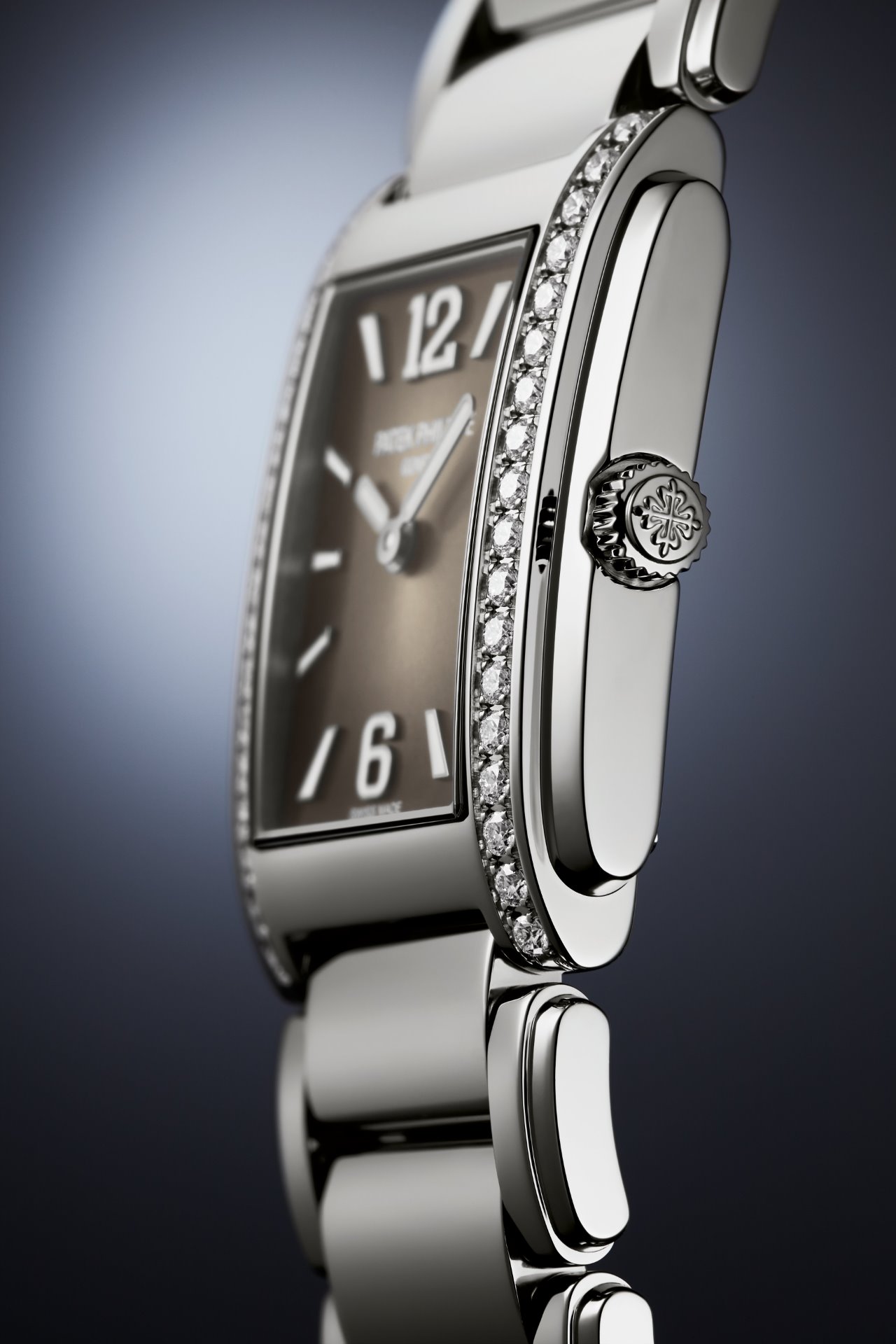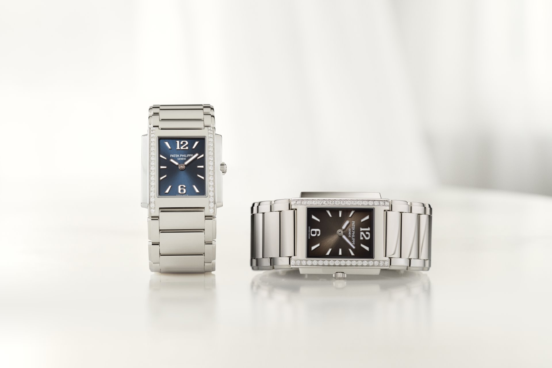 Blessed with its strong identity and a design tailor-made to live the lives of modern discerning women, the Twenty~4 quartz “manchette” model was a great success from the start and has established itself in the last two decades as one of the manufacture’s best-sellers. Over the years it has appeared in rose gold and white gold, with other dial colors (brown and blue), in a small format complementing the medium-size models, on satin straps, in dazzling Haute Joaillerie versions (including two endowed with manually wound mechanical movements) and in a yellow-gold model without diamonds on the case. Now seen as epitomizing the classic modern style, the Twenty~4 has represented, for many women, their right of entry into the Patek Philippe universe. It has consolidated the manufacture’s position as a major player in the women’s watch market and paved the way for the expansion of other women’s lines, such as the Calatravas, as well as the complications that are useful in everyday situations (the Annual Calendar, the time-zone watches and the chronographs) and even the grand complications (perpetual calendar, split-seconds chronograph and minute repeater).