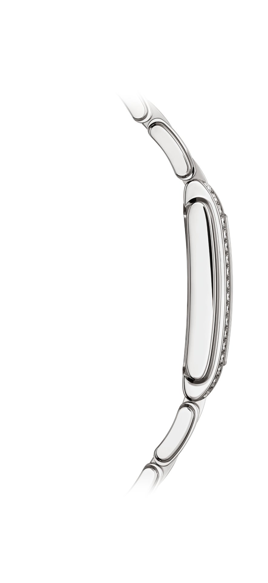 Conceived, as its name suggested, for every hour of the day and night, at work, at home and during leisure activities, the new Twenty~4 stood out by its original art-deco-inspired “manchette” or cuff design, featuring a cambered rectangular case that followed the contours of a woman’s wrist and a metallic bracelet that felt exceptionally smooth and comfortable.