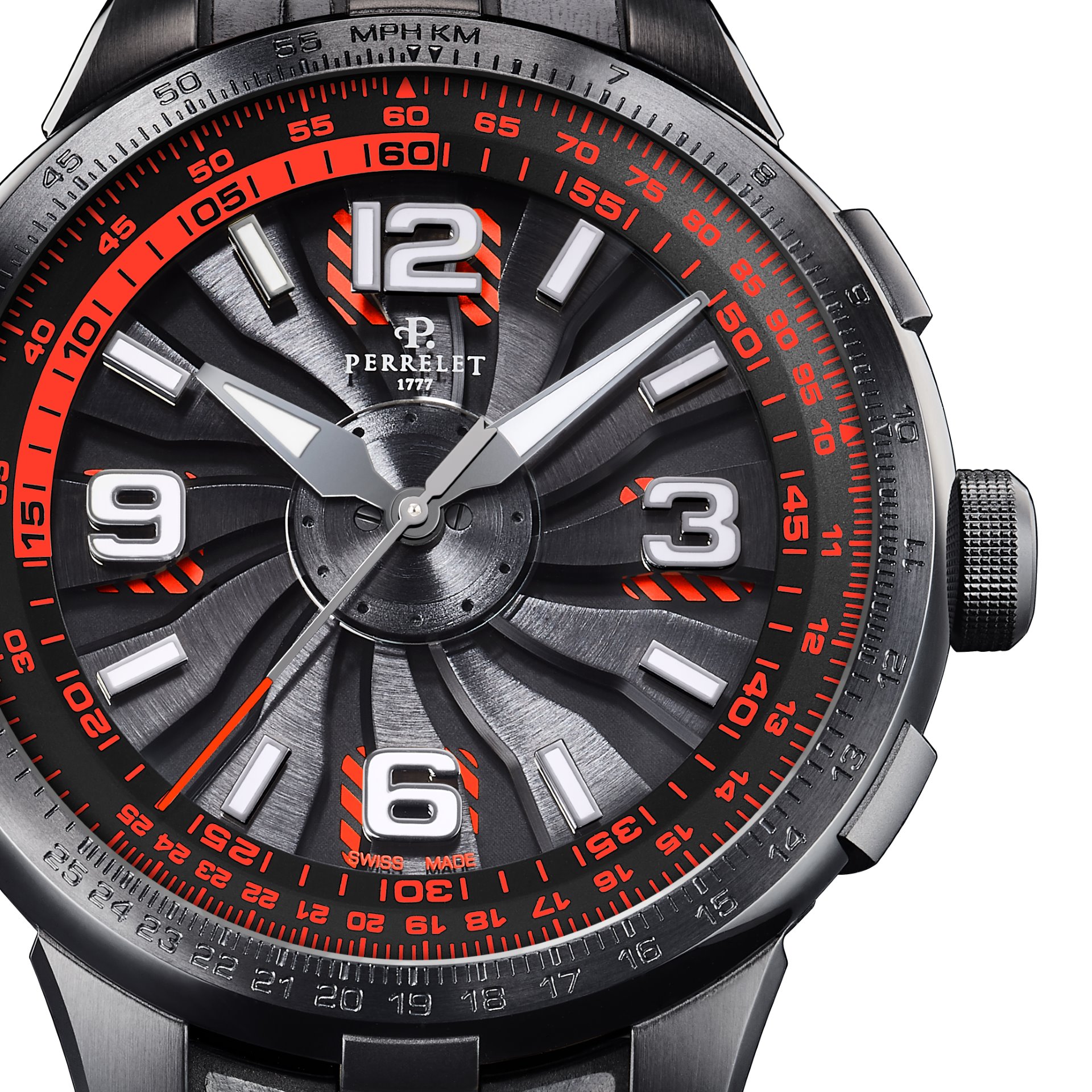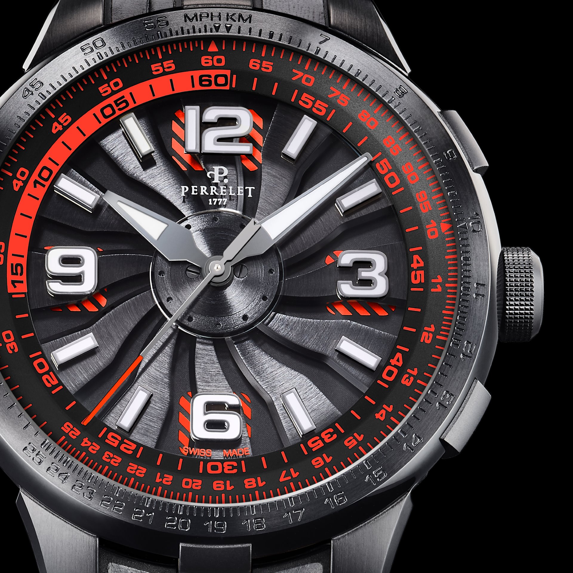 - Self-winding movement, Perrelet in-house mechanical calibre P-331-MH, chronometer-certified by COSC