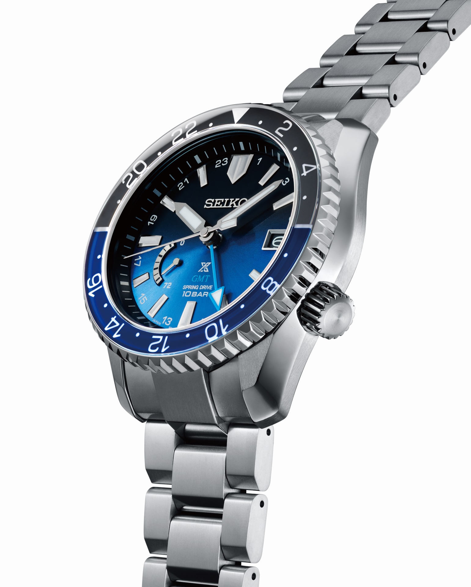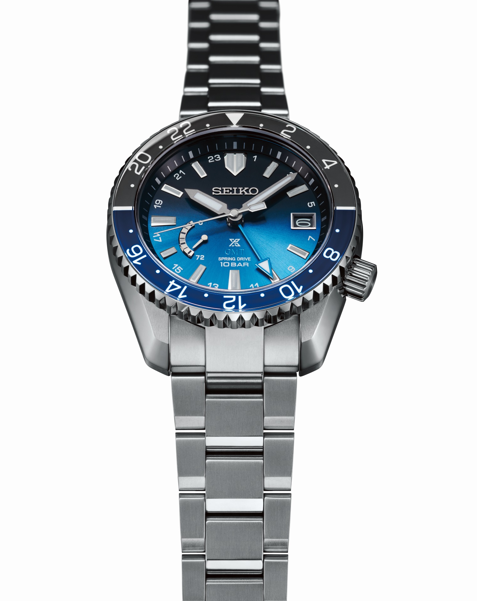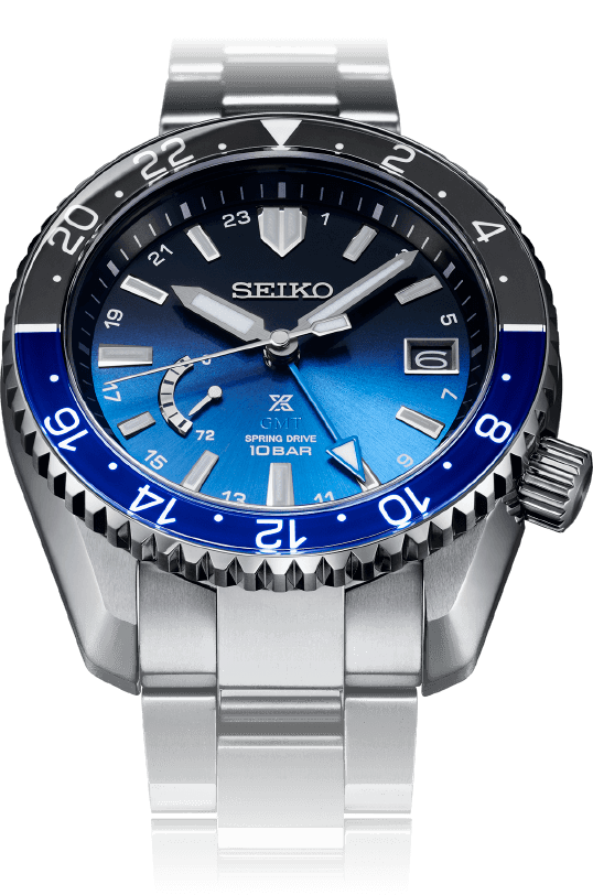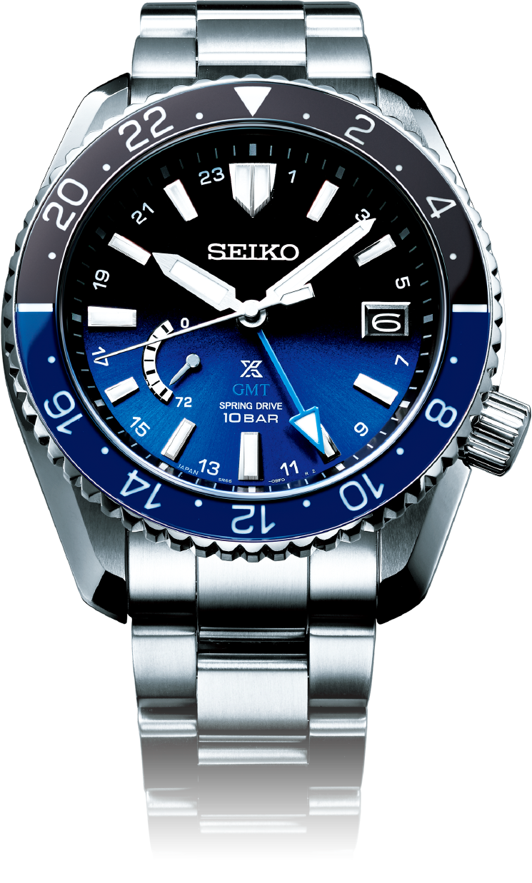 It is equipped with Seiko Caliber 5R66, a Spring Drive movement with a GMT function that proved its performance in space.